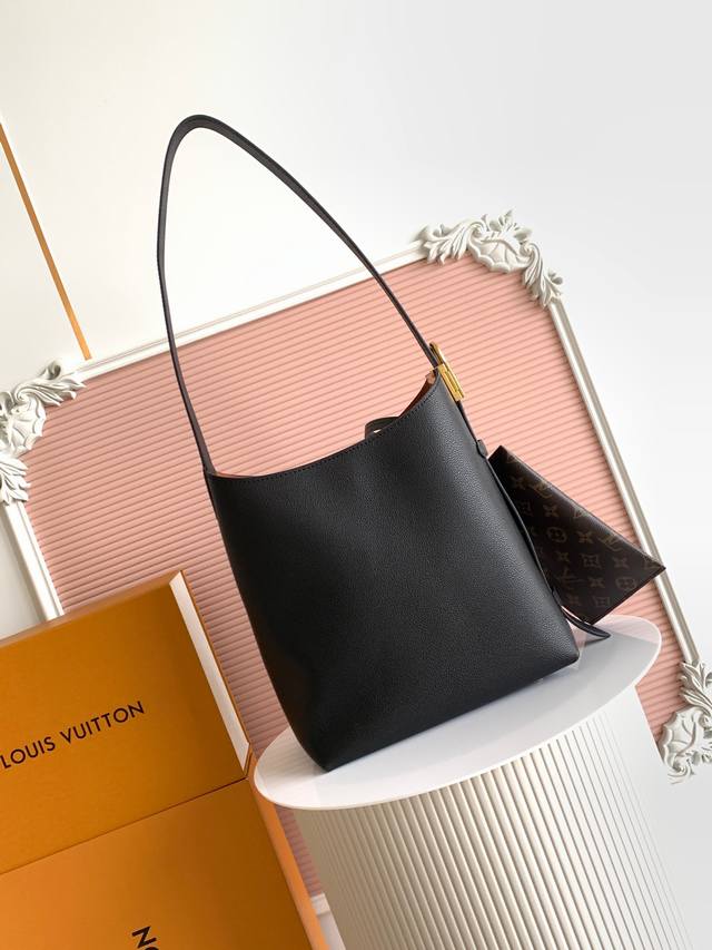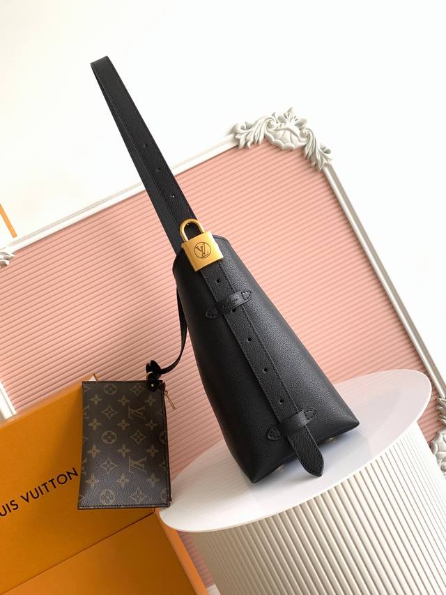 ) The Low Key Hobo Small Handbag is crafted from smooth cowhide leather with a suede cowhide lining. It can accommodate a small wallet, a large smartphone, keys, and other small items. The shoulder strap is adjustable with a padlock buckle, and the removable Monogram canvas zippered interior pocket allows for neat storage. 24.0 x 28.0 x 1 cm (L x H x W) (