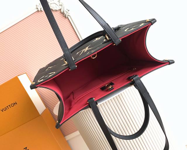 45495 model with tag, top-grain cowhide leather. Premium original enhanced version with 163C01 code changer. M45595 black, M45494 apricot print, M45495 black print. Premium original. This Onthego medium handbag is crafted from Monogram Empreinte leather, with a grainy texture accentuating the Monogram embossing, adding a touch of elegance to the angular shape. The ample microfiber interior accommodates a laptop, while the rolled leather handles and long shoulder strap allow for versatile carrying options. 35.0 x 2 x 14.0 cm (Length x Height x Width)