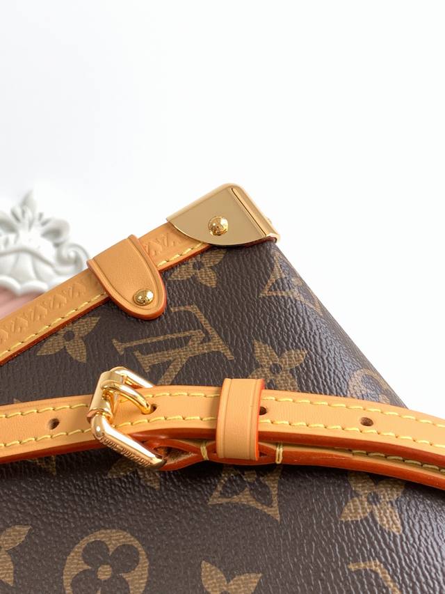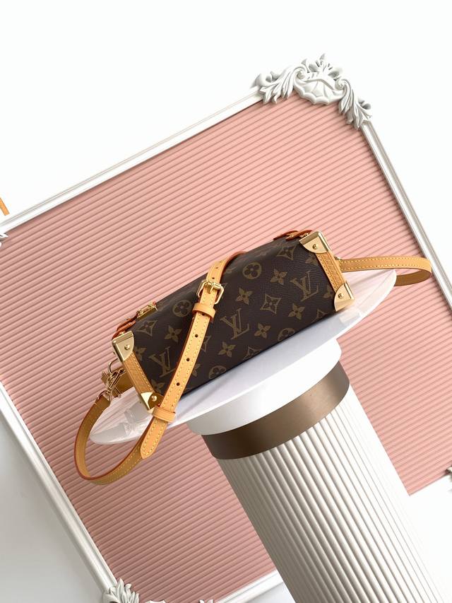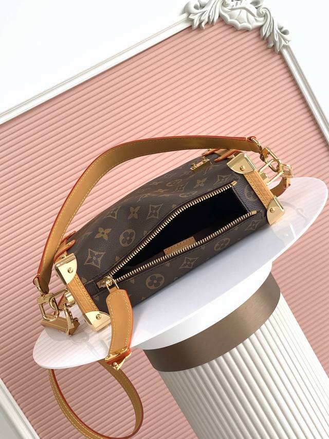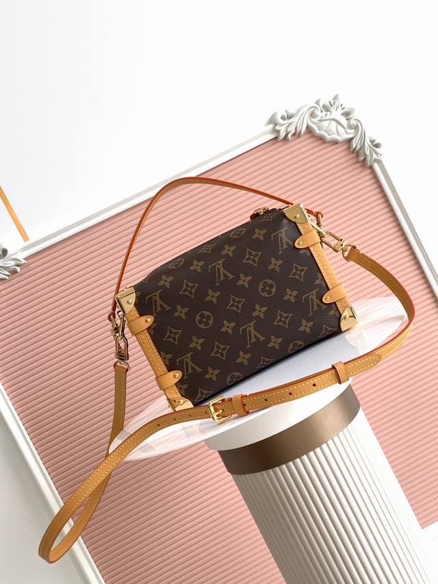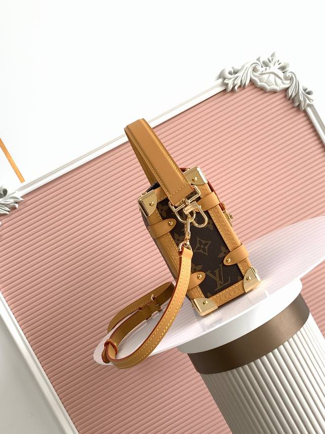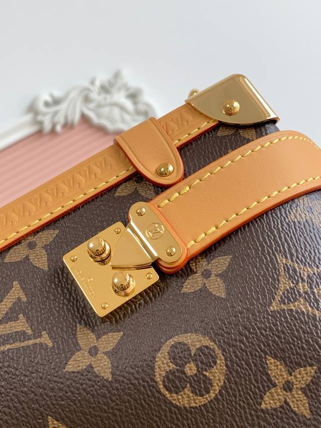 M46358 Gu Ailing's premium original pico Side Trunk handbag combines Monogram canvas and leather trim, invoking the brand's classic hardshell S-Lock clasp and metal corners, paying homage to Louis Vuitton's travel heritage. The handle and adjustable shoulder strap are both detachable, and a secure zipper completes the functional details.