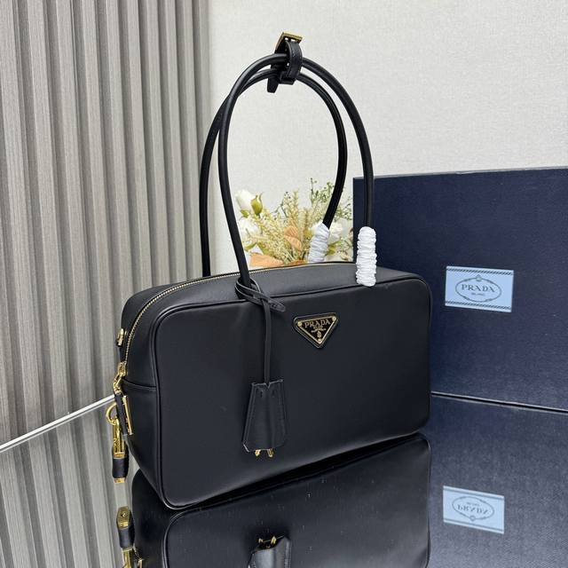 A new, premium medium handbag, 1Bb132, has arrived. This classic, crisp handbag is crafted from recycled nylon and leather for a refined and elegant look. Decorated with metal hardware and an enameled triangular metal logo, the zipper and padlock closure add a touch of chic. The leather handles have a 20cm drop. Spacious and versatile, it's both practical and stylish. Hurry and grab yours! Dimensions: Length 30cm x Height 17.5cm x Base 10cm.