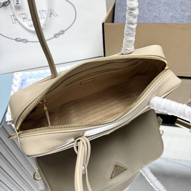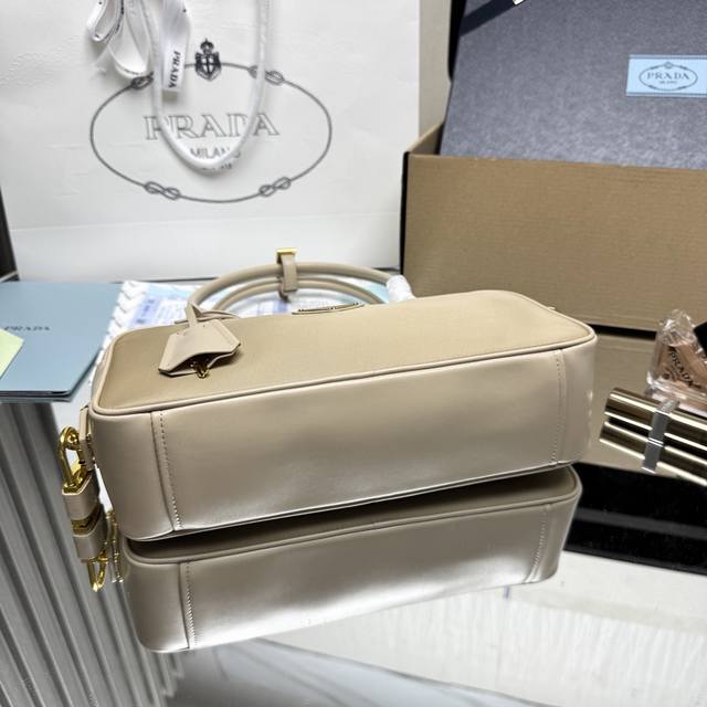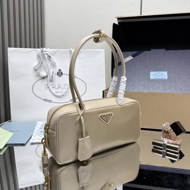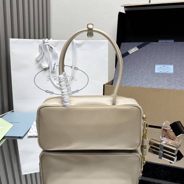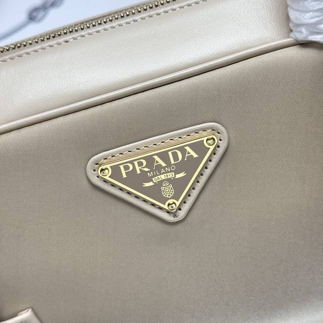 A new, premium, original handbag has arrived on 1Bb133. This bag boasts a crisp yet compact design, crafted from recycled nylon and leather for a refined and elegant look. Decorated with metal hardware and an enameled triangular metal logo, the zipper and padlock closure add a touch of chic. With ample storage, it's a versatile and stylish choice for casual or stylish wear. Hurry and get yours! Dimensions: Length 28cm x Height 13cm x Base 8cm