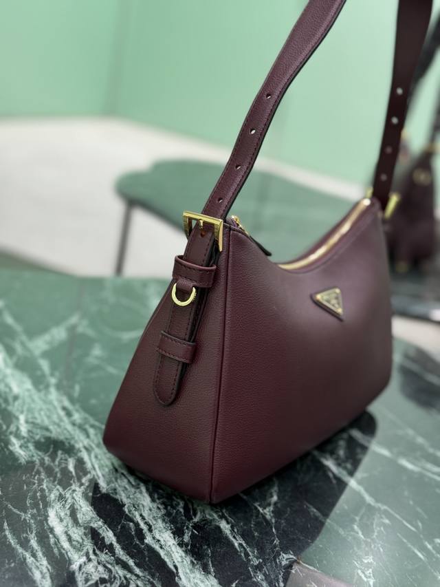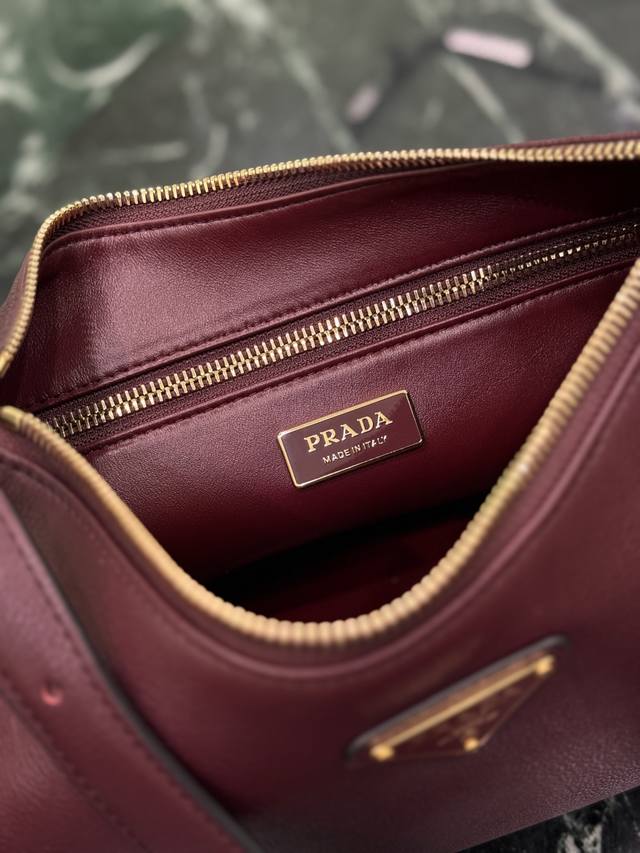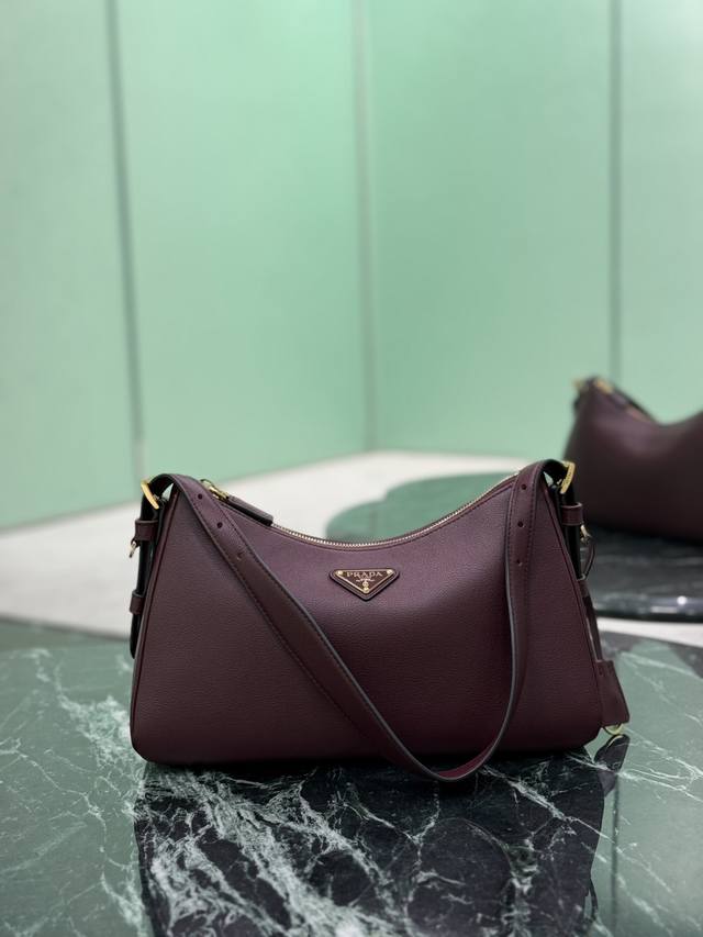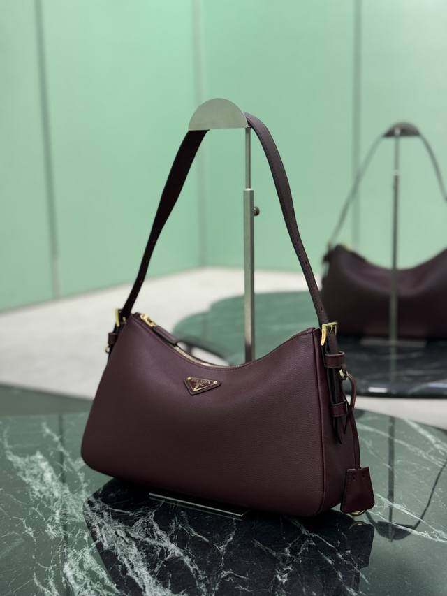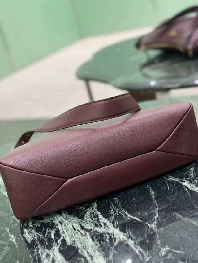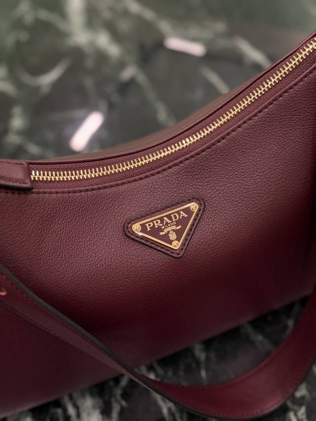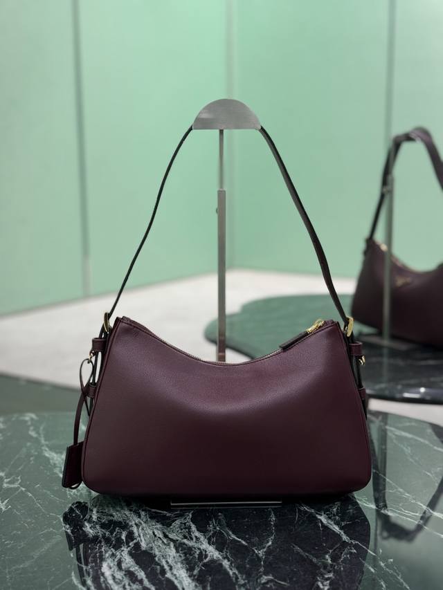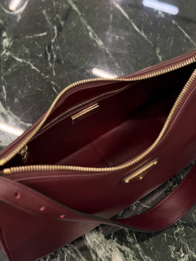 This leather underarm bag features a simple design and imported calfskin leather. It features a metal triangular enamel logo on the front and a detachable leather shoulder strap. The leather is delicate and soft, practical, lightweight, and spacious, making it a versatile and sophisticated choice.