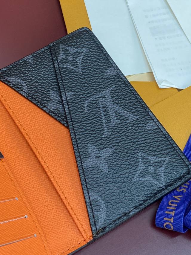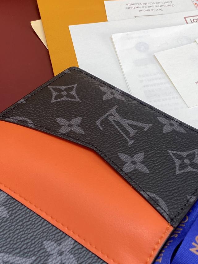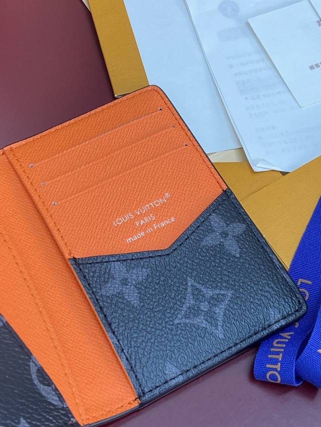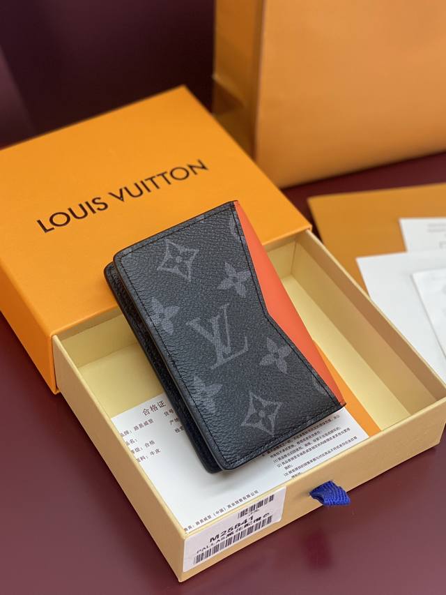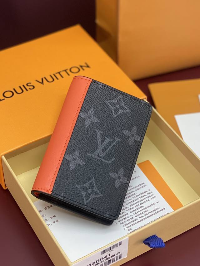 Factory Price p M25841 Orange! Pocket Wallet, This pocket wallet is made of Monogram Eclipse coated canvas and features bright leather trim for a fresh look. Its compact design features an interior pocket, card slots, and exterior pockets, fitting easily into most pockets.