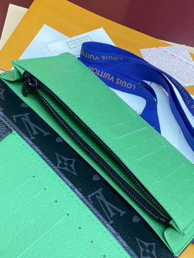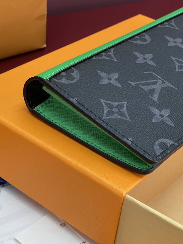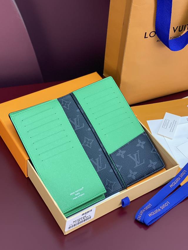 Factory Price p M25846 Green! Brazza Wallet. This Brazza Wallet features the rich texture of classic Monogram Eclipse canvas, contrasted with the vibrant leather trim. Its slender shape features a card slot, zippered pocket, and multiple compartments to securely store coins, bills, and receipts.