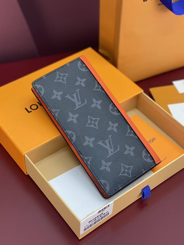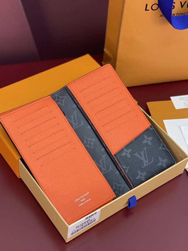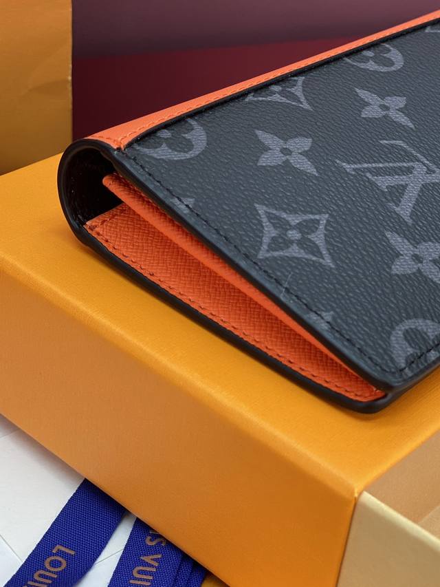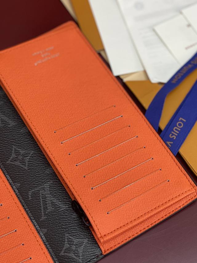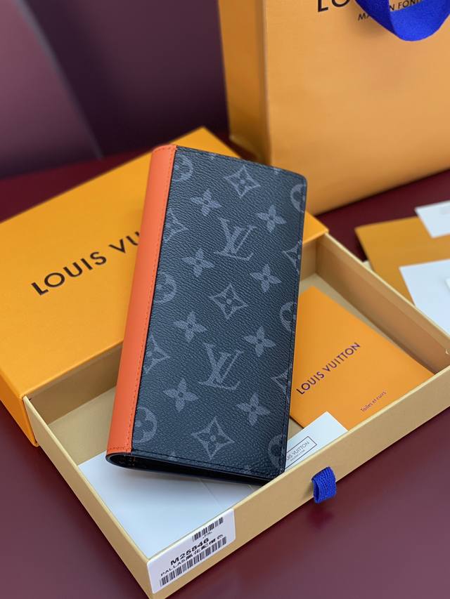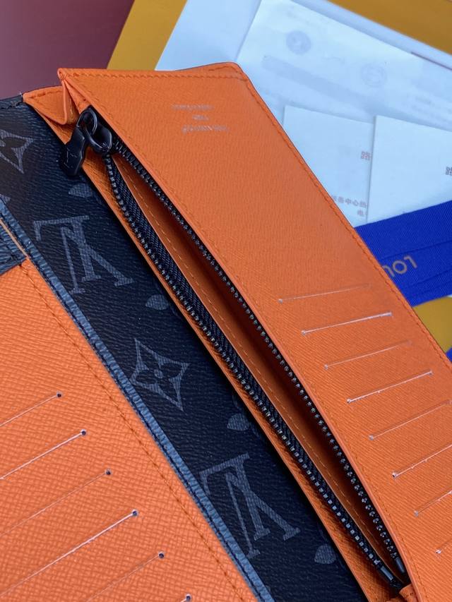 Factory Price p M25846 Orange! Brazza Wallet. This Brazza Wallet features the rich texture of classic Monogram Eclipse canvas, contrasted with the vibrant leather trim. Its slender shape features a card slot, zippered pocket, and multiple compartments to securely store coins, bills, and receipts.