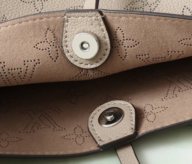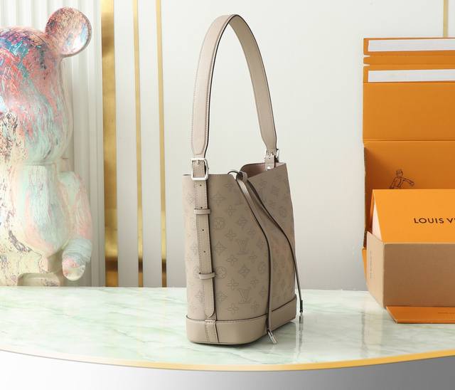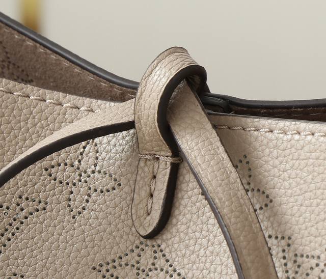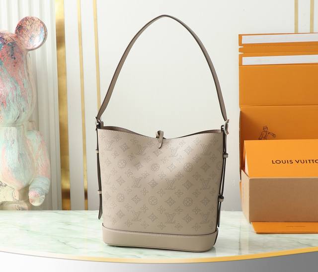 Factory Price p Top Original Home Photos M12139 Black Perforated M12140 Gray Perforated Flore Handbags, Introducing the all-new Flore handbag, featuring a modern bucket silhouette that's both practical and sophisticated. Crafted from Mahina calfskin, it's perforated with the House's signature Monogram pattern and embellished with silver-tone hardware. The versatile shape fastens with a knot, and the interior features a zippered pocket for valuables. Dimensions: 28 x 27 x 10 cm (