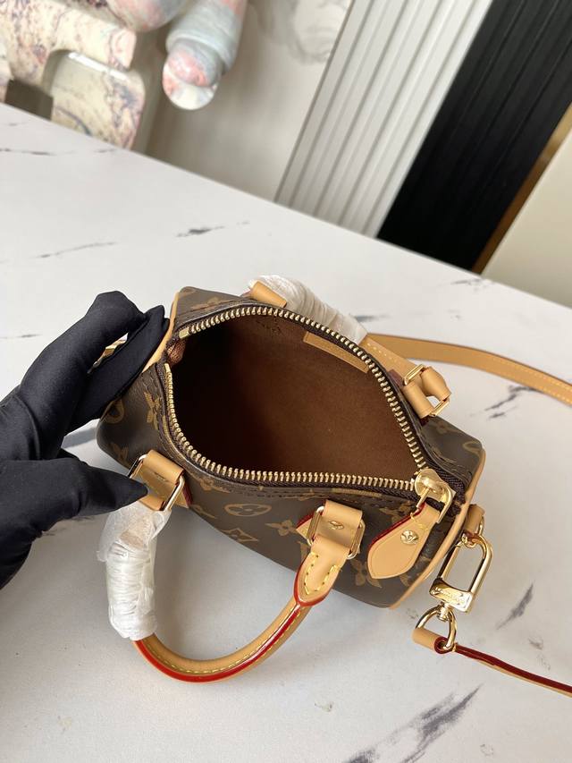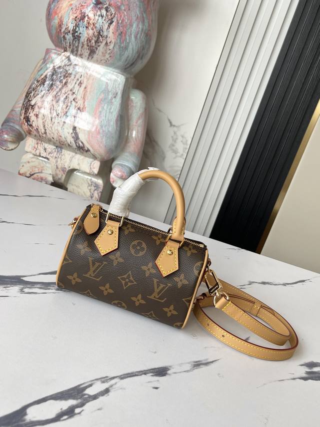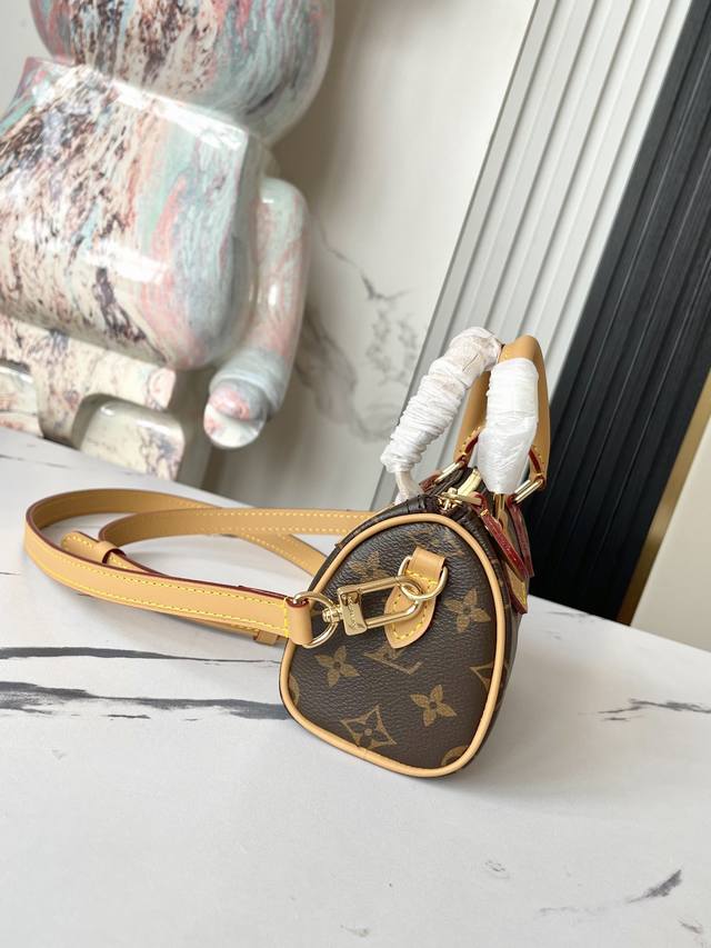 Factory Price: p. Top-quality original, real photos of the M81085 Monogram Mini Pillow Bag. The Speedy series' Nano Speedy handbag, crafted from classic Monogram canvas, exudes ultimate femininity and is the ideal choice for carrying your everyday essentials. A perfect miniature version of the original Speedy handbag, this bag features exquisite stitching and exceptional lightness. The shoulder strap is adjustable and detachable. 16.0 x 11.0 x 9.0 cm