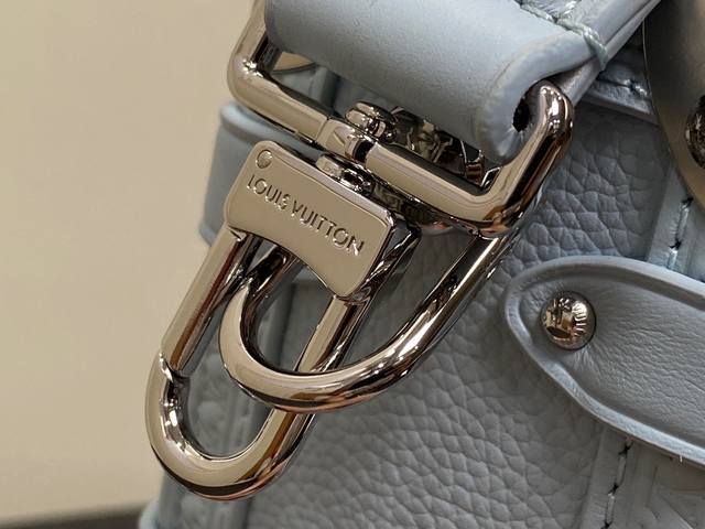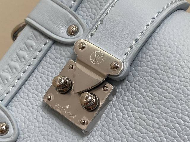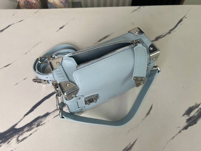 Factory Price p Top-quality original single-handle photo M23817 Light Blue M25067 Full Leather Soft Case Series Side Trunk Small Handbag M23915 Gray 25067 Blue 23817 Black Silver Buckle Side Trunk PM is made of grained calfskin leather with a silver S-shaped lock and corners, inspired by the House of Representatives' vintage trunks. A detachable leather handle and a removable and adjustable leather strap provide carrying options. The side trunk compartment is suitable for a wallet, large smartphone, keys, and lipstick. Dimensions: 18 x 12.5 x 8 cm.