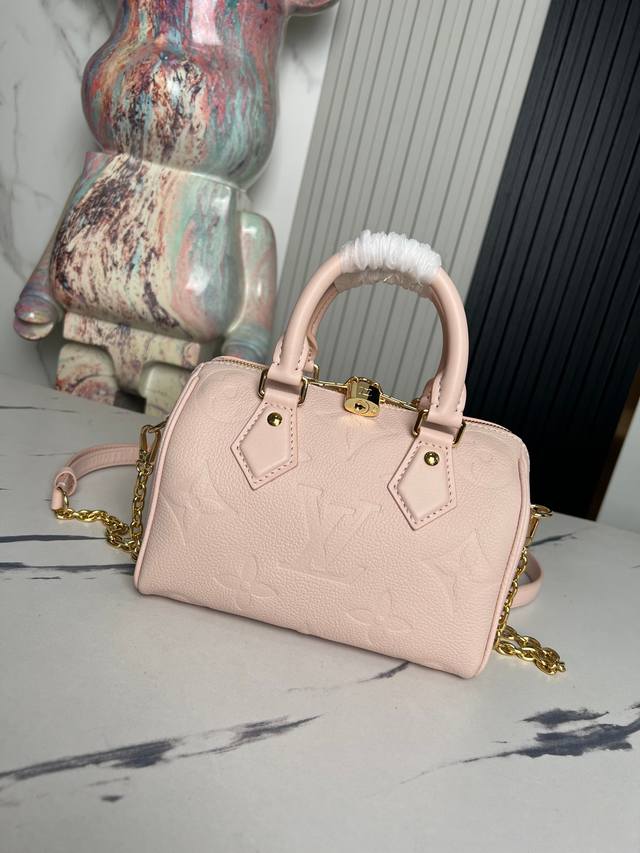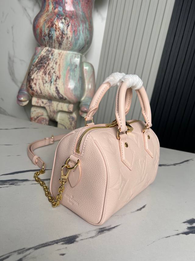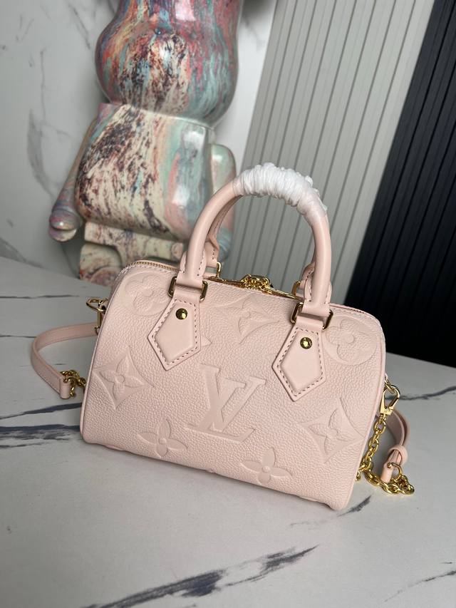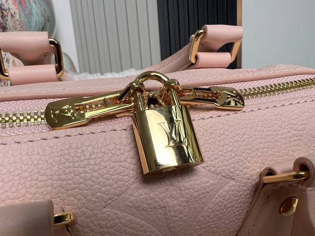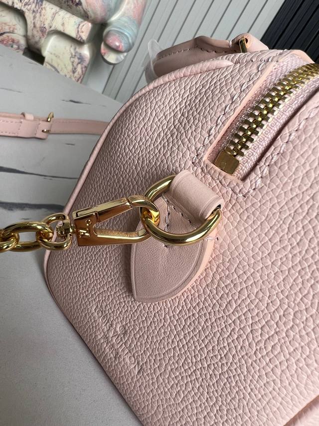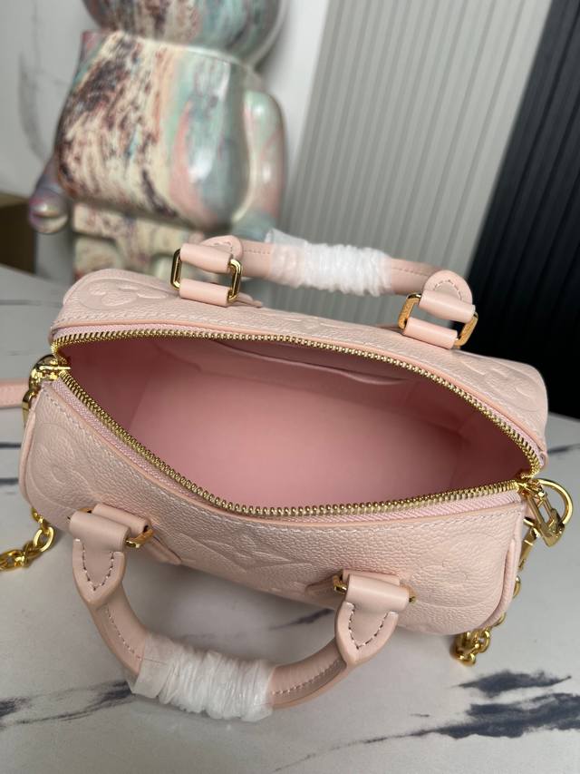 Factory Price (p) Top-Quality Original Single-Owner Photo M47136 Pink Embossed 58953 Full Leather Pillow Bag from the Speedy Collection. This Speedy Bandouli