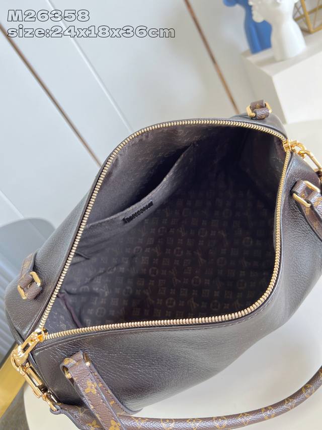 Factory Price: Premium Original M26358 Dark Brown Wax M26359 This season's Express Medium Handbag is crafted for the modern woman. This iconic design features a cowhide body with classic Monogram canvas trim. The Monogram jacquard lining pays tribute to the brand's rich heritage, making it an ideal choice for urban living, allowing for multiple carry styles. The key case and padlock add a finishing touch to the overall design. 24 x 18.5 x 36 cm (H x W x D)