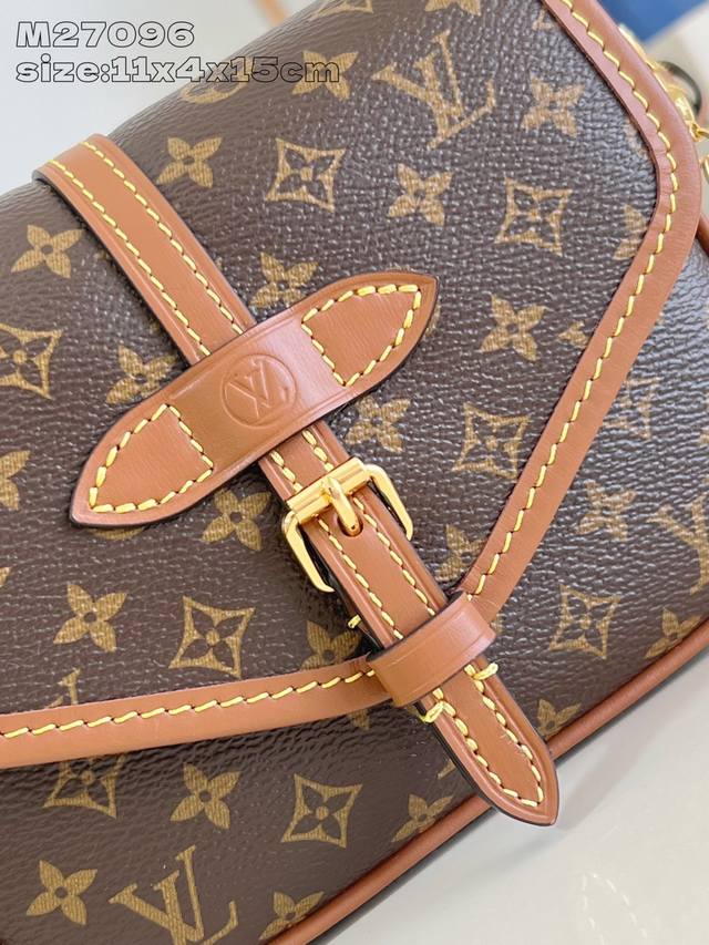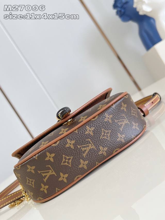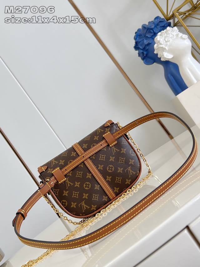 Factory Price: Premium Original M27096 Gemini. This Solo handbag features a combination of Monogram canvas and smooth cowhide leather, accented with a contrasting lining and a detachable metal chain, adding a trendy touch to your accessories. Perfectly sized for keys and coins, the detachable wide shoulder strap allows for shoulder, crossbody, or waist wear. 11.6 x 4 x 15.7 cm (H x W x L) (