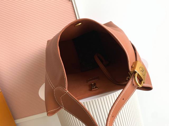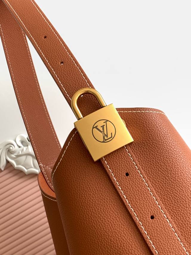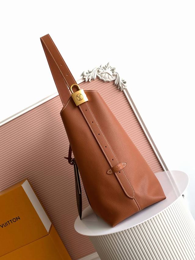 Soft cowhide leather outlines simple and elegant lines, paired with a suede lining for a trendy feel, showcasing the brand's exquisite craftsmanship. The adjustable shoulder strap is embellished with a classic inscribed padlock, and ample space is available for a laptop and other daily necessities.