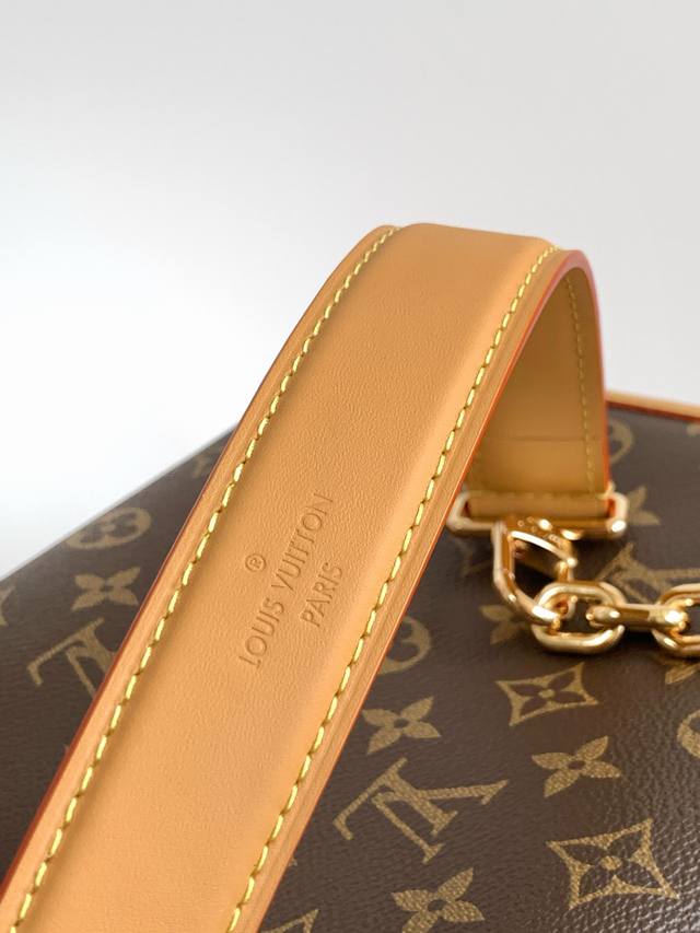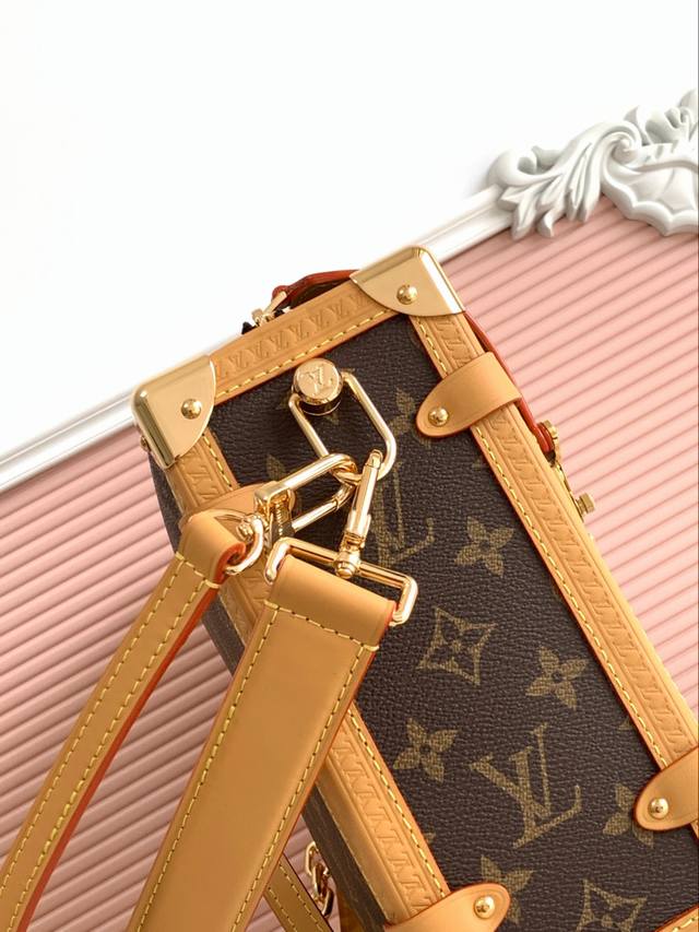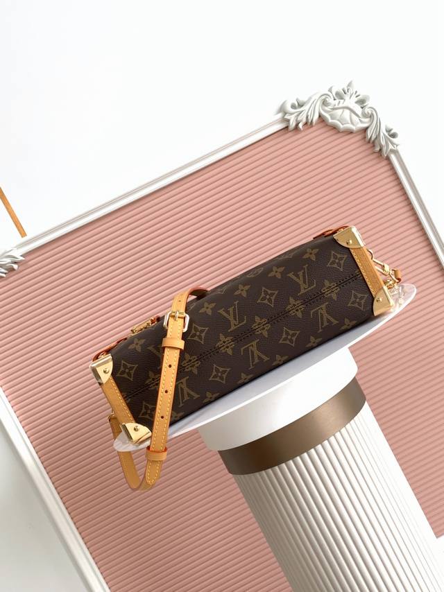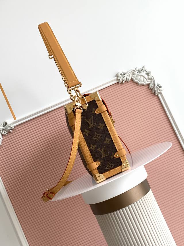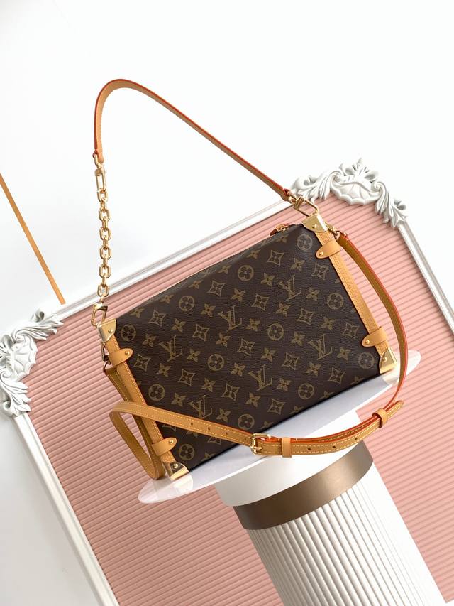 Premium original 163C dynamic variable code. This large Side Trunk bag features Monogram canvas with contrasting leather trim, gleaming hardware, and a new extended chain, creating a striking design for everyday essentials. The S-Lock closure and trunk-style corners add to the brand's signature style.