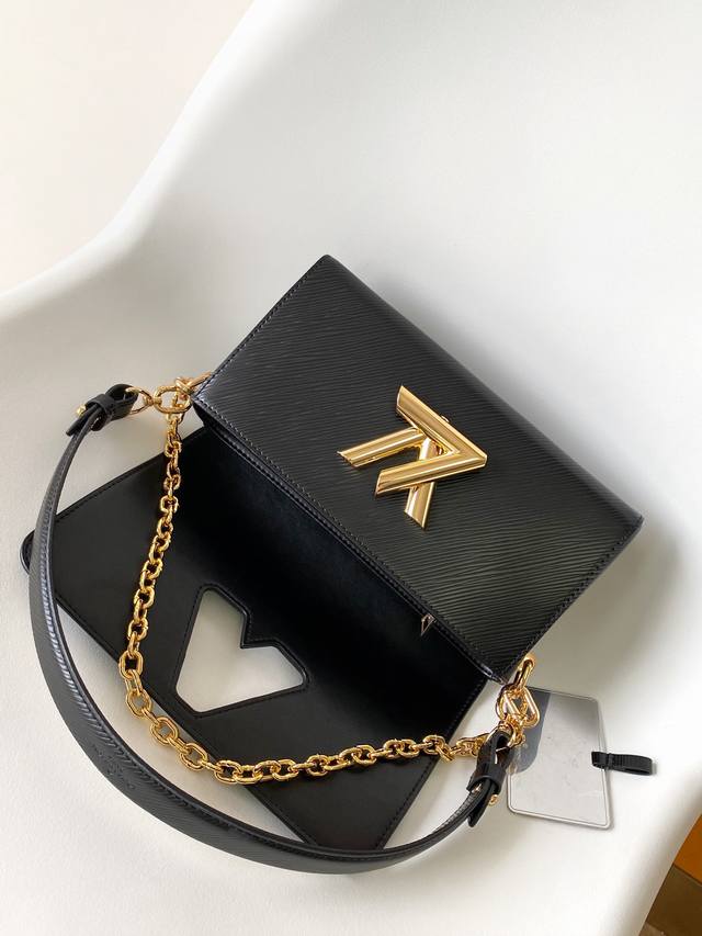 M25336 Black Samurai Twist West Handbag (M24549 Black, M24550 Off-White) The Twist West reinterprets the classic Twist silhouette with an all-black design. This long-sleeved piece exudes a sophisticated allure that transcends time. It features matte leather with LV Twist West's signature rock embellishments, showcasing the House's signature style. A tonal braided chain can be used as a decorative accent, allowing for a variety of style options. Detachable strap. 12 x 7 x 23.5 cm (