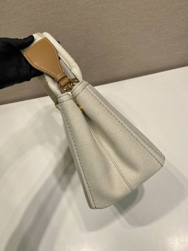 . Inspired by timeless nautical chic, this mini handbag reinterprets classic style. Crafted from cotton canvas with leather trim, it showcases a refined and versatile personality. It features canvas handles, a detachable and adjustable logo-printed woven strap, and a detachable leather keychain. It can be carried by hand or on the shoulder. Its spacious interior is stunning, a timeless favorite worth owning.