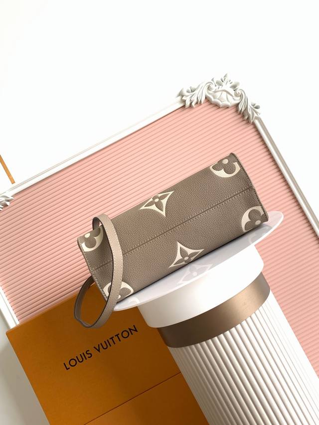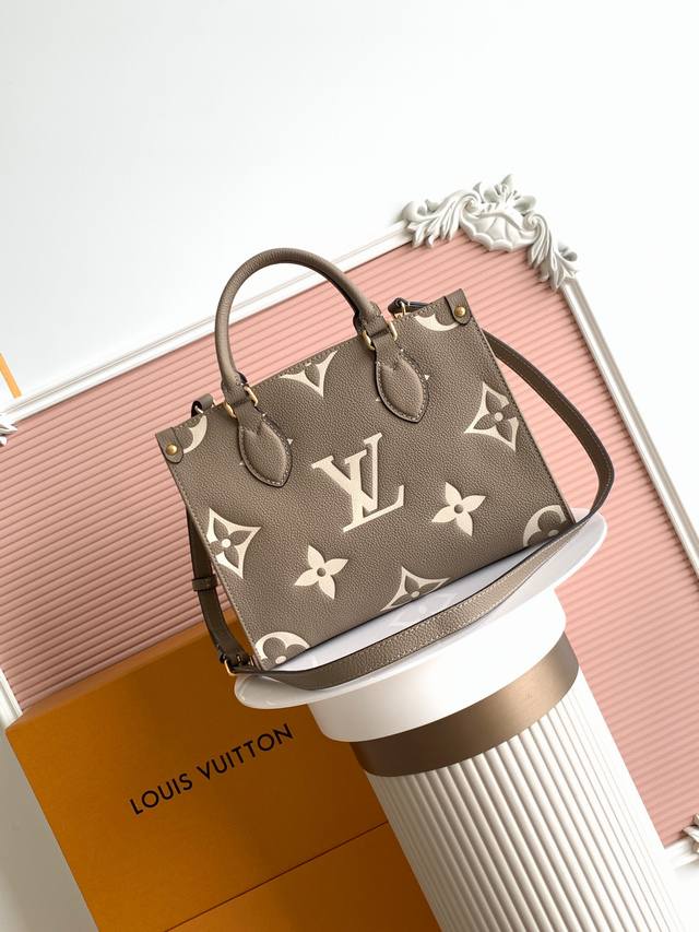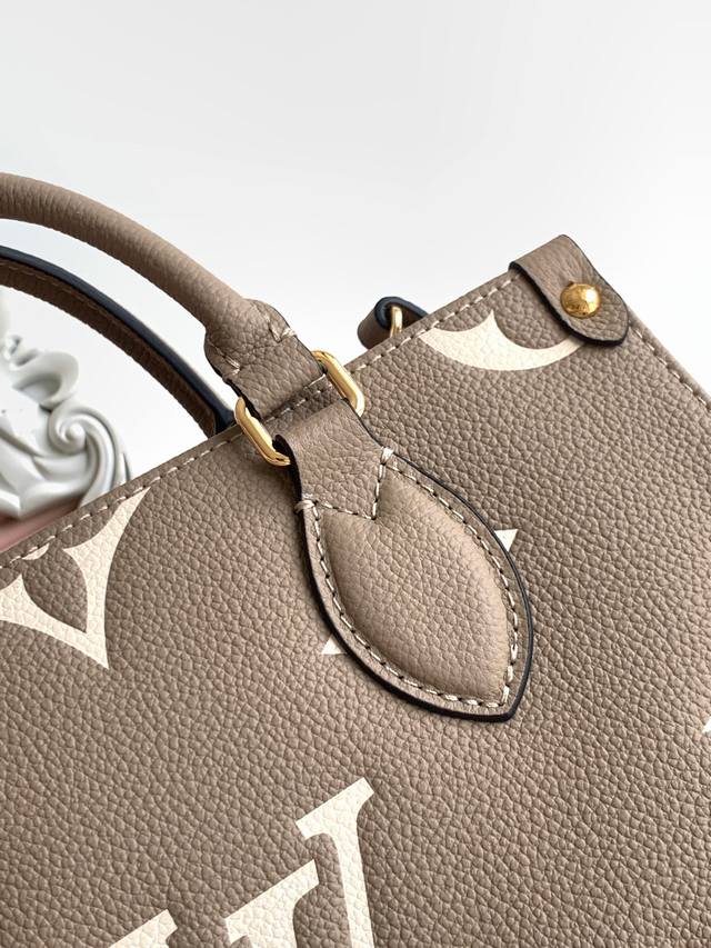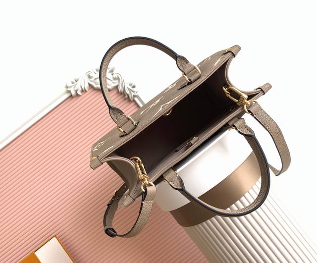 Style No. 45779, top-grain cowhide leather, top-grade original enhanced version, 163C01 variable-coding chip. M45659 (black print), M45779 (apricot print), M45653 (black print). This Onthego Tote bag features a Monogram pattern, first dyed and then embossed into soft, grained cowhide. Its ample interior accommodates a laptop and other office supplies. This all-leather, embossed floral diaper bag is available in a small Bb size, with long and short handles for easy hand or shoulder carry. Dimensions: 25.0 x 11.0 x 19.0 cm.