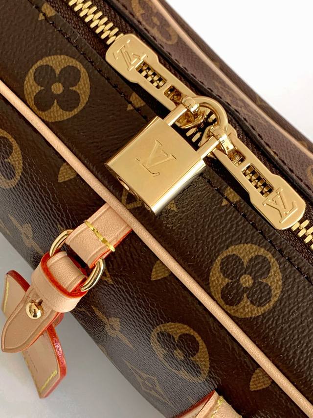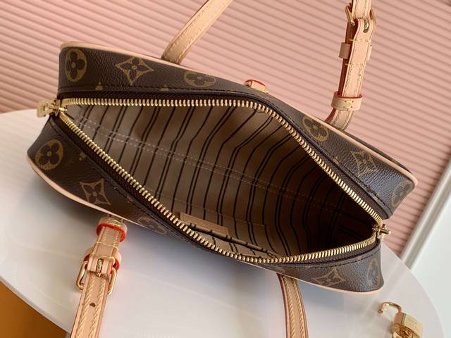 Harking back to the classic design of the 1980s Cite handbag, this Hangon handbag has a rich retro style. Monogram canvas and Wn trim create a modern bowling bag shape, and the padlock and nameplate highlight the brand's touch. A zipper closure and adjustable shoulder strap allow for flexible travel. Dimensions: 26
