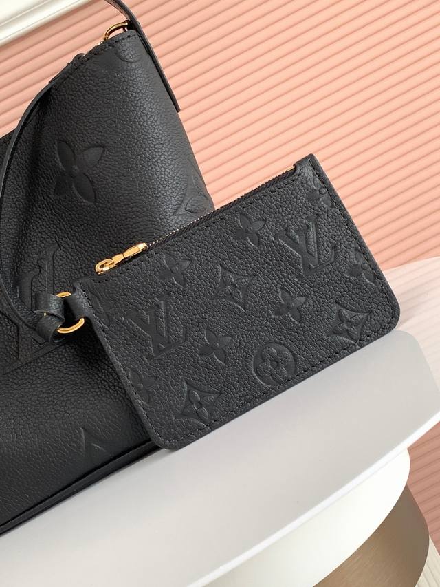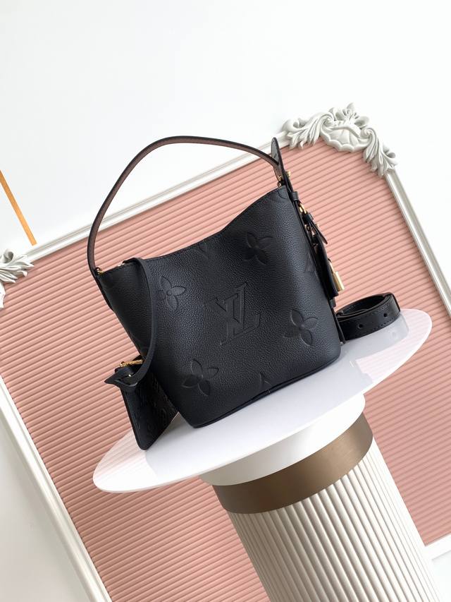 Top-grain cowhide leather, 163C01 variable-coding chip, and premium original matching locks (M12925, monogram, M13480, black, M14356, pink, and M13045, gray). This All In Bb handbag embodies modern design with an elegant silhouette and ample space. Monogram Empreinte leather craftsmanship creates a minimalist bucket bag structure, accented by the signature nameplate and metal padlock, while the adjustable handle pays tribute to the brand's trunk-making heritage.