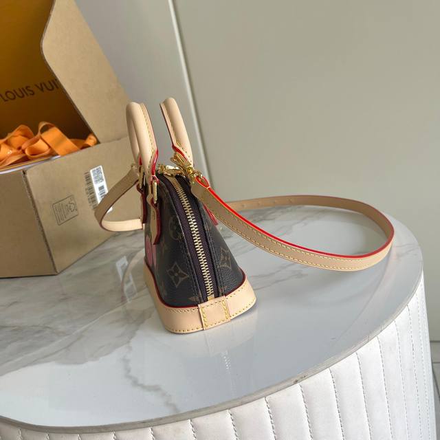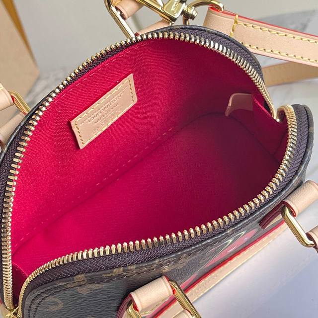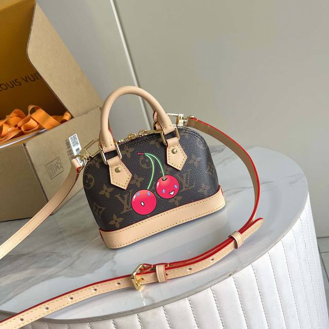 163C01 Chip Version Internal Price P Style No.: M13416 Cherry Original Enhanced Version Exclusive Real Shot Background Image This Nano Alma handbag combines Monogram coated canvas with cowhide leather trim, giving it a delicate silhouette that features the cherry pattern from the Louis Vuitton x Takashi Murakami reissue series. The top handle and detachable, adjustable shoulder strap allow for multiple carrying options, and the interior space can accommodate a short wallet and a large smartphone, among other everyday essentials. Dimensions: 12 x 8 x 18 cm (H x W x Length)