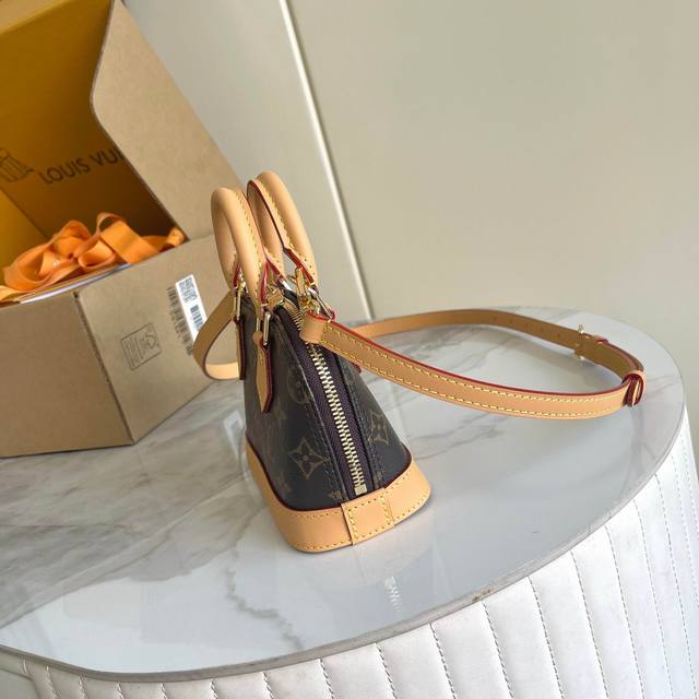 163C01 Chip Version Internal Price P Style No.: M82717 Monogram Canvas Original Enhanced Version Exclusive Real Shot Background Image This Nano Alma handbag encapsulates the classic Alma handbag design, featuring leather trim on the Monogram Dsto Dune canvas from the early spring runway. A delicate handle and a detachable and adjustable shoulder strap allow for multiple carrying options. Dimensions: 18 x 12 x 8 cm
