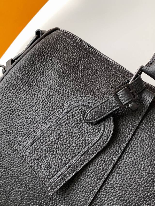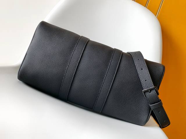 163C01 Top-grade original single-piece black all-leather travel bag, Keepall Bandouli