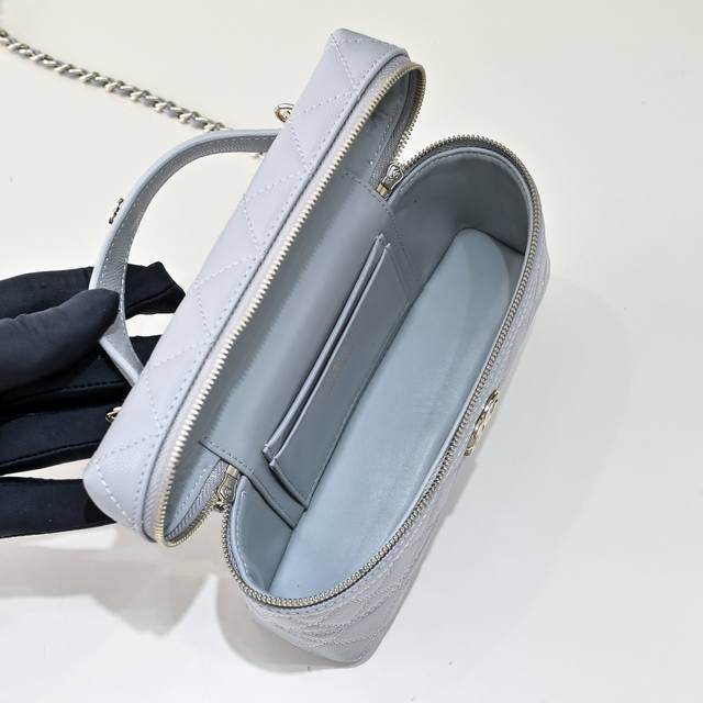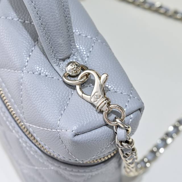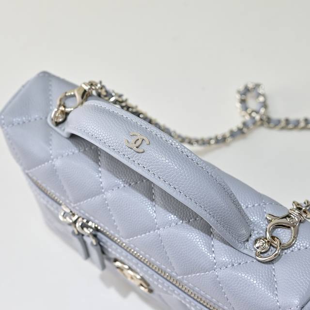 25C Lunchbox Bag, exquisite and compact chain clutch bag, made of calfskin with a gold-tone metal handle and a small logo. A curved stitch on the leather surface makes the bag look more sturdy. The pebbled leather is also resistant to scratches. The chain is detachable and can be carried by hand. The capacity is also just right. The unique design and practicality have made it my new favorite. Style number 554487. Size 17-19.5-5. Comes with packaging.