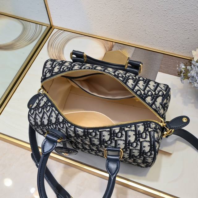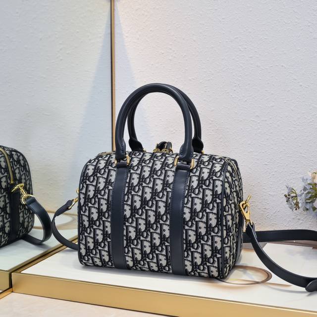 This Dior Groove .25 handbag is a new addition to the Winter 2024 ready-to-wear collection, designed by Maria Grazia Chiuri, exuding elegance and style. Crafted from blue Oblique printed fabric, the leather key pouch is adorned with the Christian Dior Paris logo and accented with gold-plated stars, giving it a distinctive look. A zippered padlock opens with the key, and the spacious compartment features a slip pocket and a zippered pocket for various everyday essentials. It comes with a leather top handle and an adjustable, detachable shoulder strap, allowing for hand-carrying, shoulder-carrying, or crossbody wear, making it the ideal handbag for everyday styling.