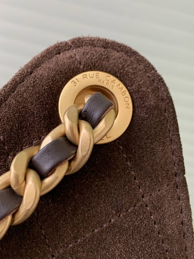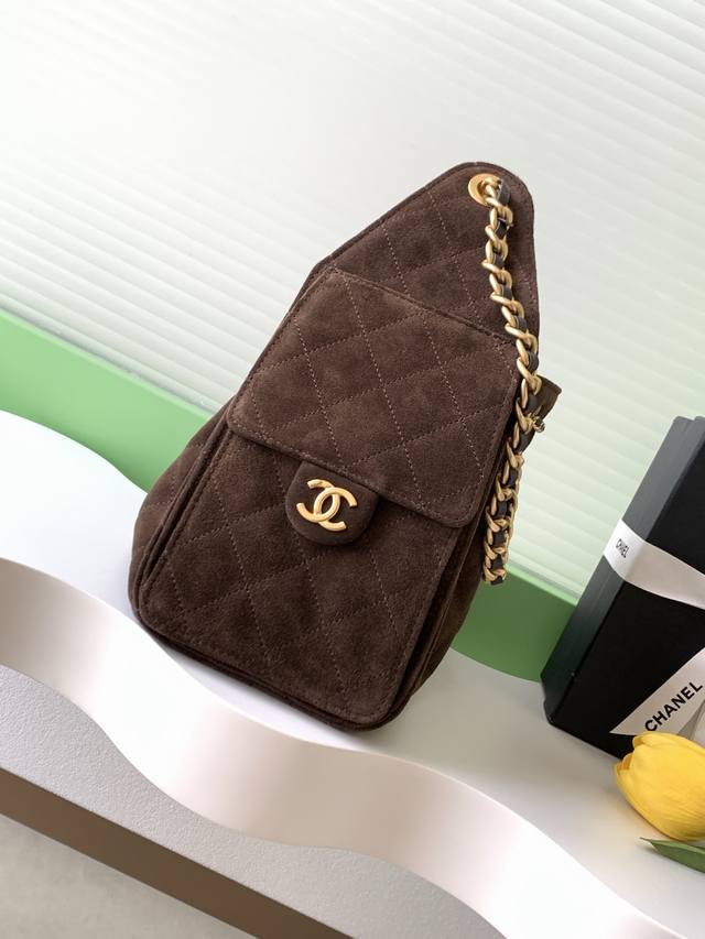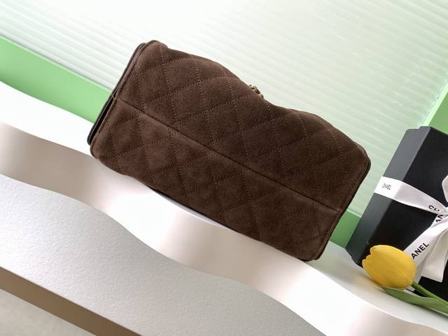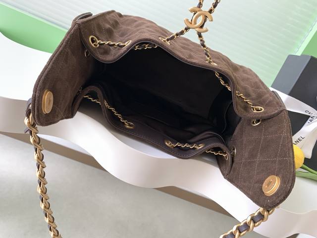 25K Suede Bag, Vintage Gold Coin Button Drawstring Bucket Bag with Quilted Pattern and Classic Chain Design, Exuding Sophistication! A must-have for everyday outings, exquisite appearance, delicate texture, easily complementing both casual and formal occasions. Style Number As5293, Size 30-26-14.