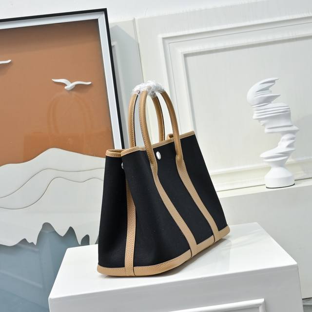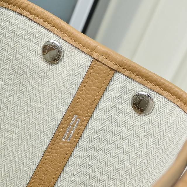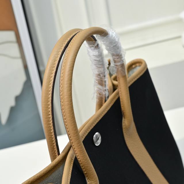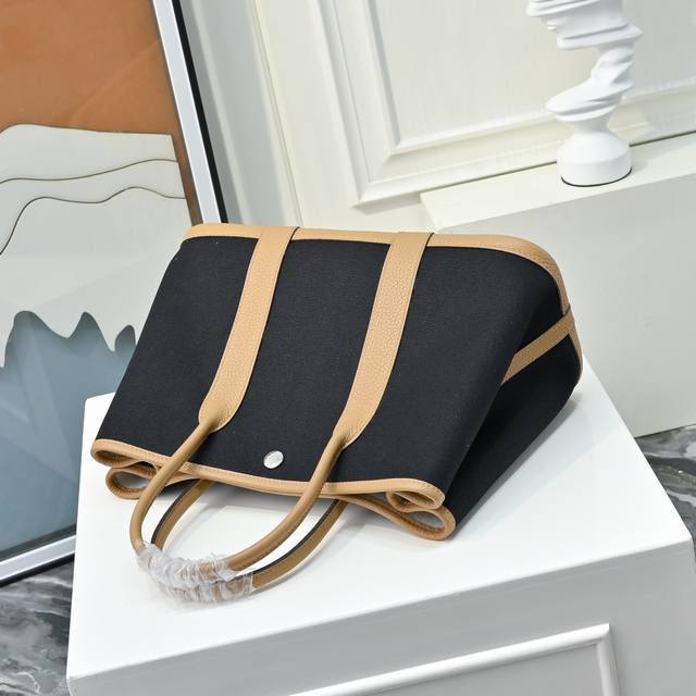 31 Garden Bag: Canvas and Togo Leather Patchwork. Each color combination is incredibly sophisticated and the actual product is gorgeous. The size is just right, perfect for commuting or going out! The simple color blocking creates a striking contrast, making it a top trend this season and perfect for spring and summer! This material is not only lightweight and durable but also showcases a unique texture and style!