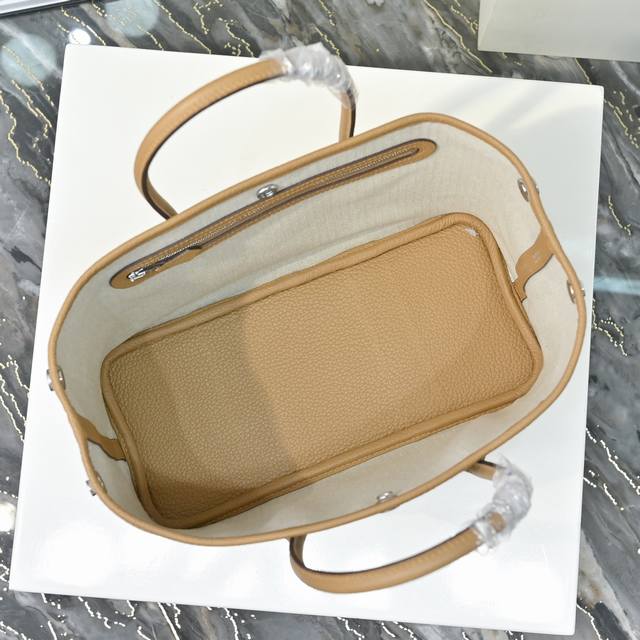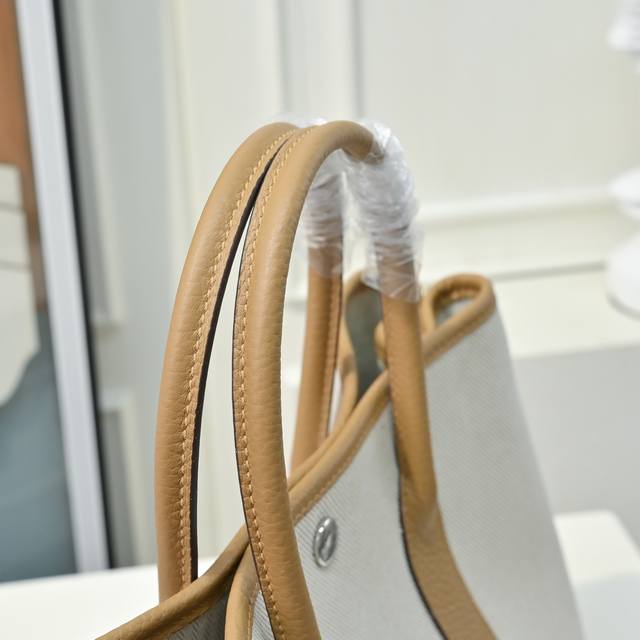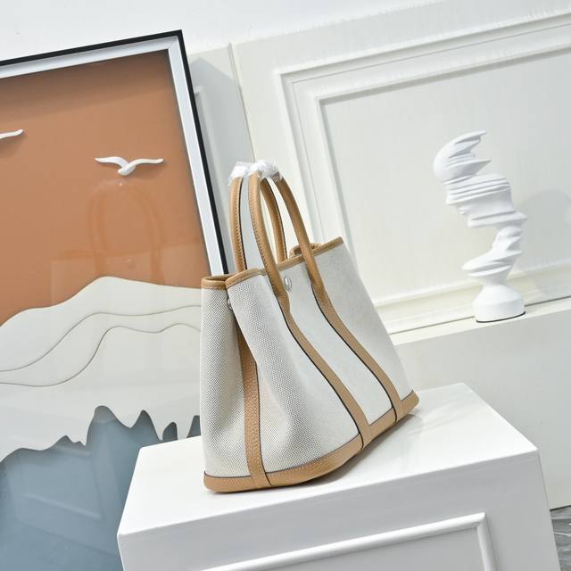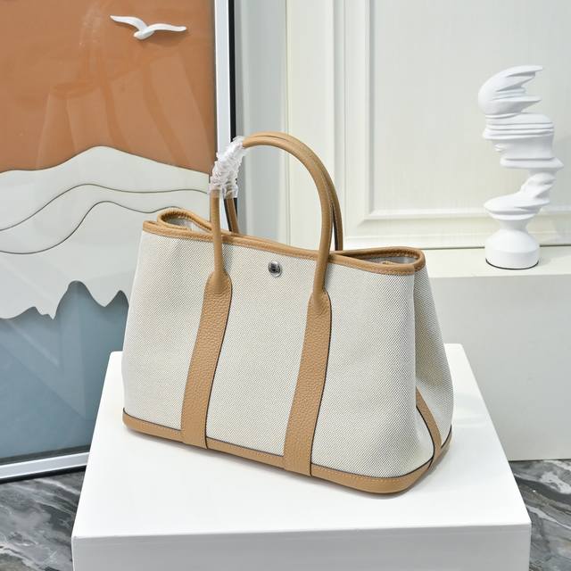 31 Garden Bag: Canvas and Togo Leather Patchwork. Each color combination is incredibly sophisticated and the actual product is gorgeous. The size is just right, perfect for commuting or going out! The simple color blocking creates a striking contrast, making it a top trend this season and perfect for spring and summer! This material is not only lightweight and durable but also showcases a unique texture and style!