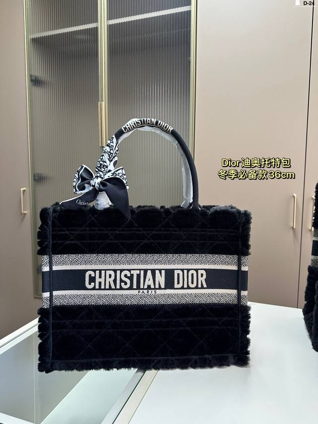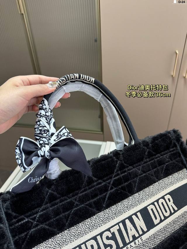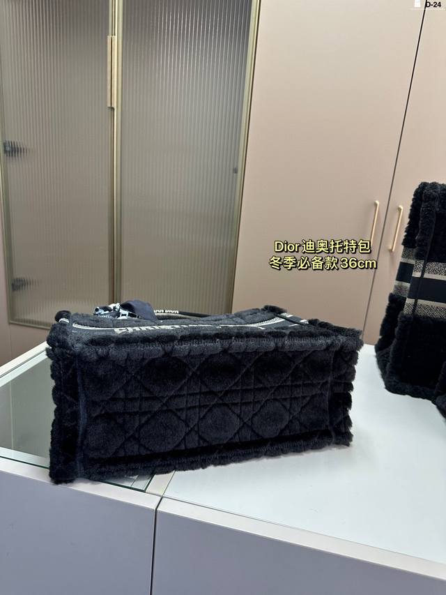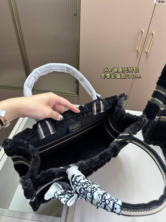 36cm Dior Furry Tote Bag Dior Lambswool Tote Bag Super Large Capacity Latest Trend D-24 Size 41