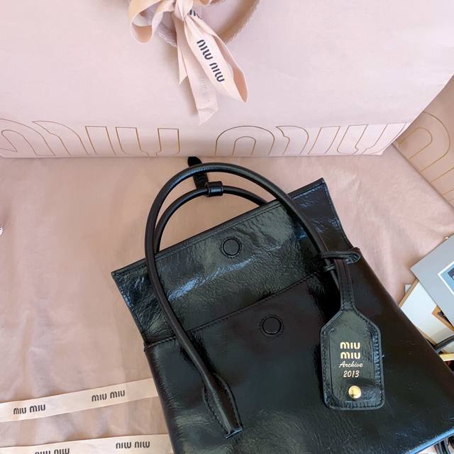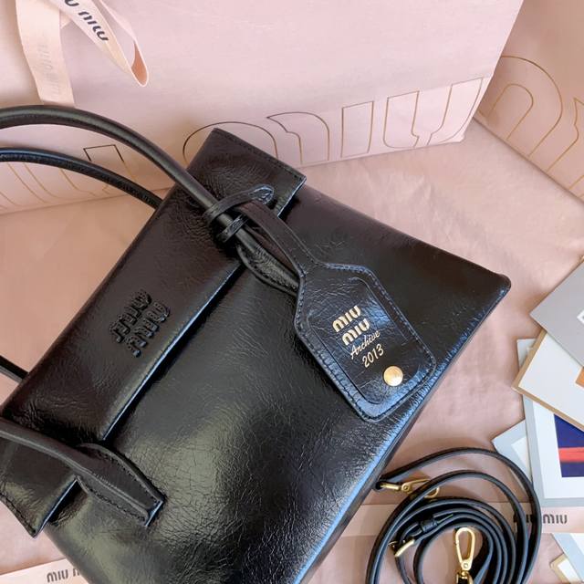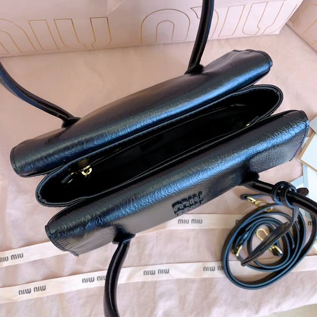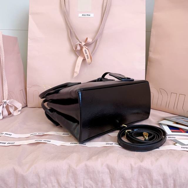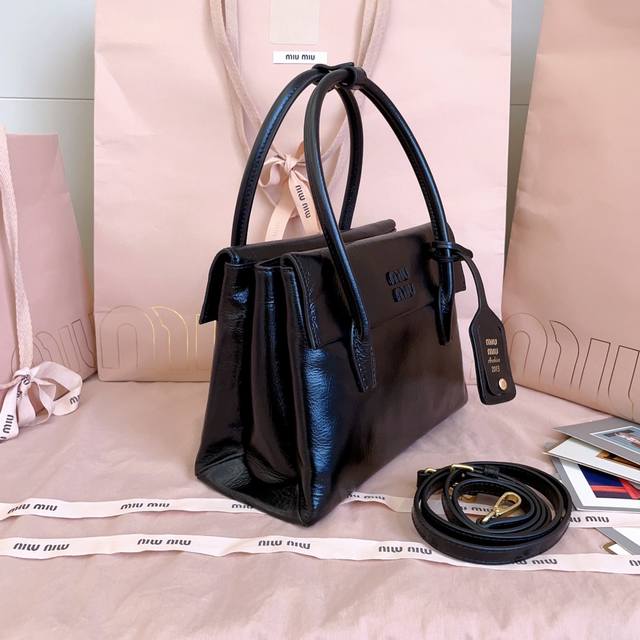 5Ba303: Mimisolitaire's new calfskin handbag, inspired by 2006 archives, features structured lines and exquisite details, combining classic and experimental elegance. Its unique leather texture and the clash of vintage and modern styles create a one-of-a-kind classic. It includes the iconic logo on the front, a detachable charm, and a long leather shoulder strap. Multiple compartments and ample capacity. Dimensions: 25 x 17 x 10.5 cm.