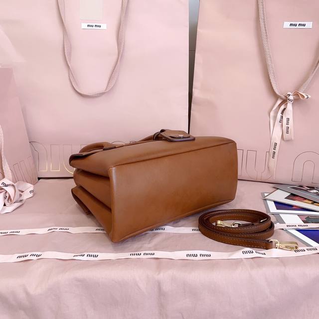 5Ba303: Mimisolitaire's new calfskin handbag, inspired by 2006 archives, features structured lines and exquisite details, combining classic and experimental elegance. Its unique leather texture and the clash of vintage and modern styles create a one-of-a-kind classic. It includes the iconic logo on the front, a detachable charm, and a long leather shoulder strap. Multiple compartments and ample capacity. Dimensions: 25 x 17 x 10.5 cm.