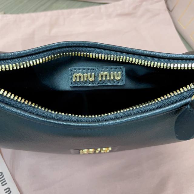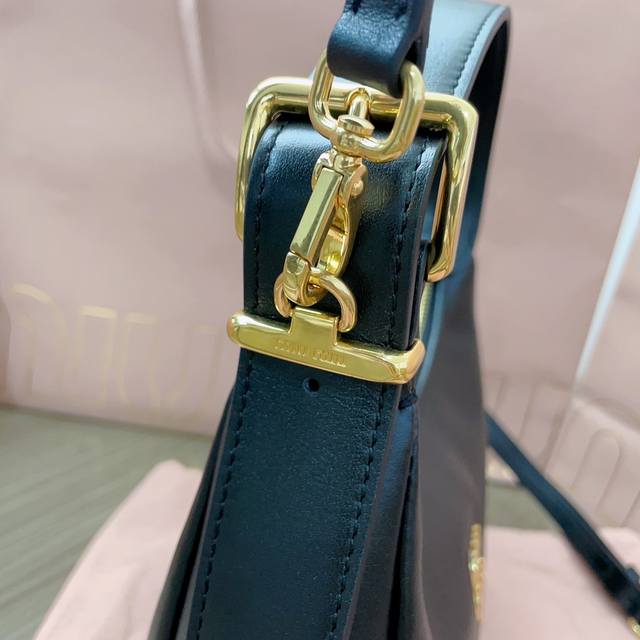 5Bc161, Miu's runway Hobo bag, a top recommendation on the official website, an absolute must-have style this year. Made of top-quality imported calfskin, featuring a fashionable dragonfly line design, a refined and structured shape, versatile and highly adaptable, suitable for everyday wear. It has the iconic metal logo on the front, a detachable and adjustable leather shoulder strap, and a cotton satin lining. A favorite among many celebrities and influencers. Dimensions: 20 x 17 x 6 cm. Comes with original packaging. (