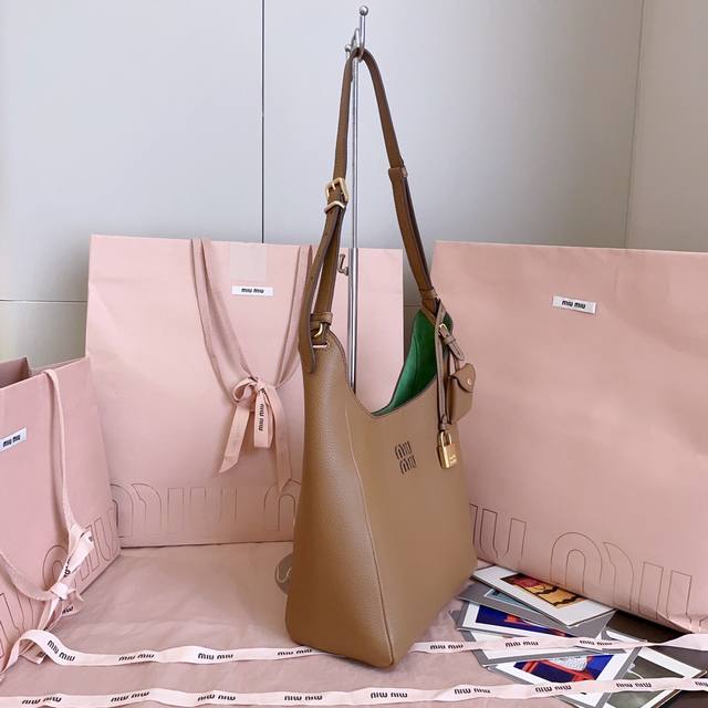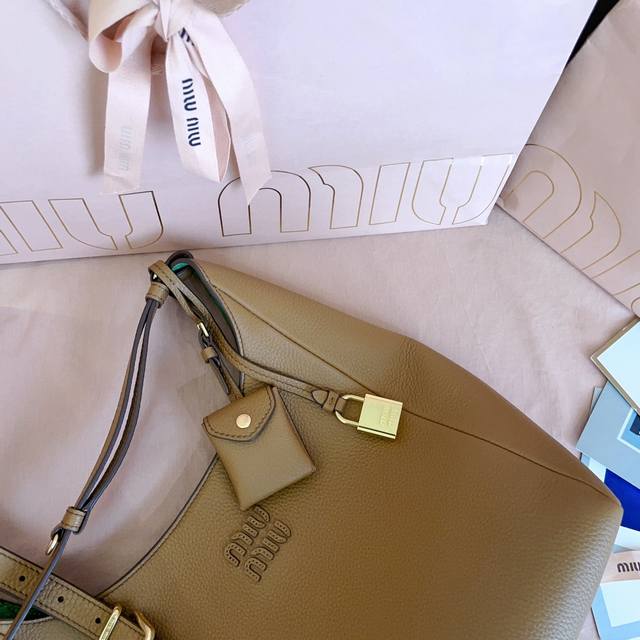 5Be098: Miu's new pop-up tote bag from Japan, made of top-grade imported cowhide, with a luxurious and elegant vintage feel. The bag is soft yet structured, and features a metal lock charm. It exudes a relaxed and effortless vibe, perfectly embodying a sweet and cool style. The hand-stitched logo adds a touch of sophistication. Suitable for commuting or shopping, its practicality is maximized. Dimensions: 28 x 22.5 x 12 cm.