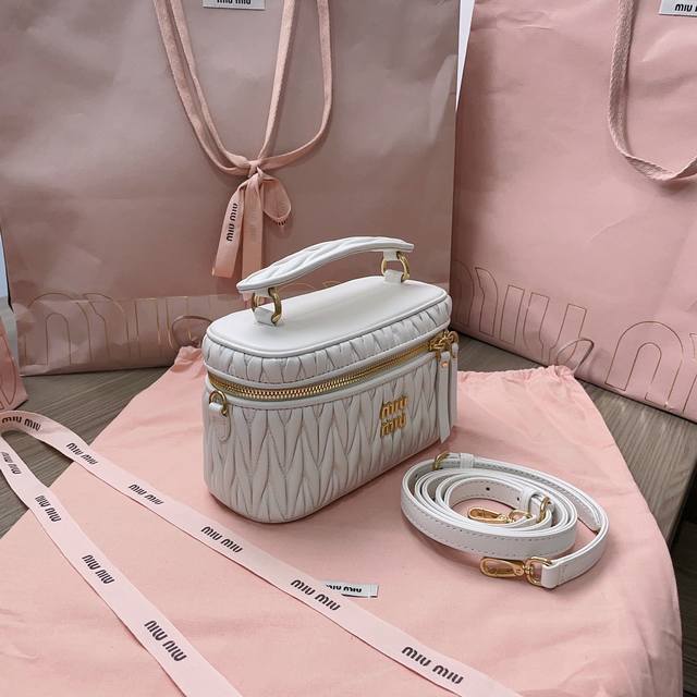 5Bh226: New M cosmetic bag/handbag, made of imported lambskin with the brand's signature Matelasse texture embroidery, vintage matte hardware, simple lines, elegant yet vibrant silhouette, sturdy and stylish overall shape, full of personality, versatile, spacious, 110 cm detachable and adjustable leather shoulder strap, dimensions: 18 x 11.5 x 8 cm, comes with original packaging.
