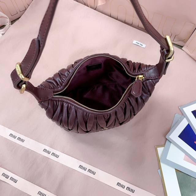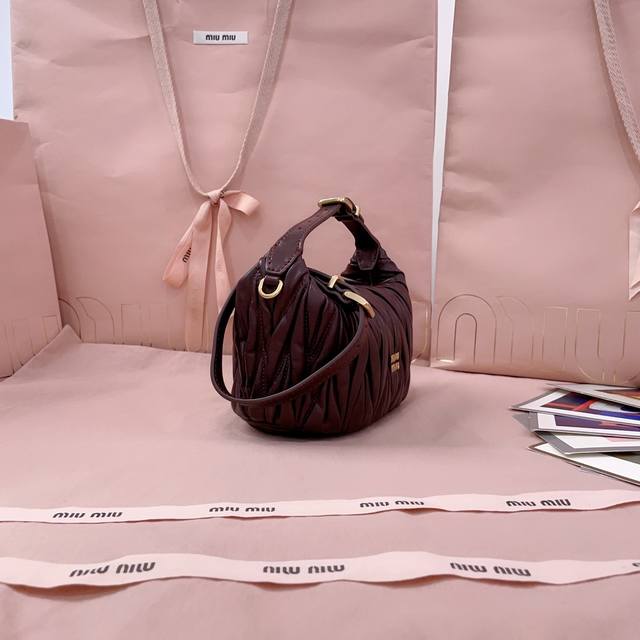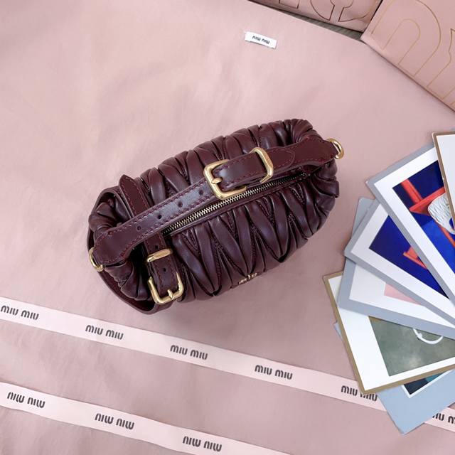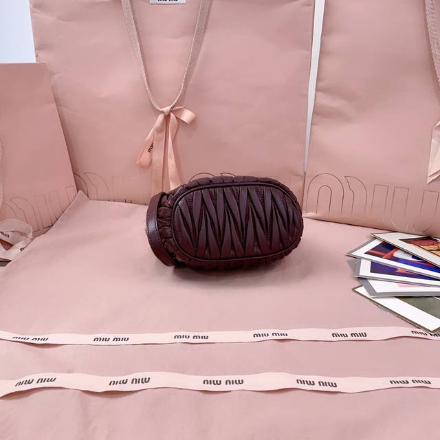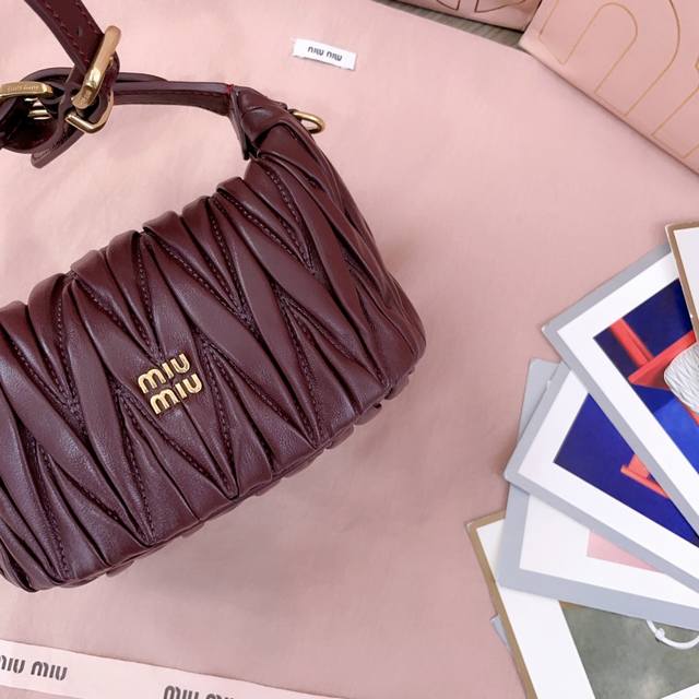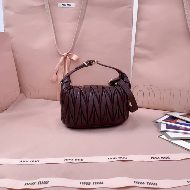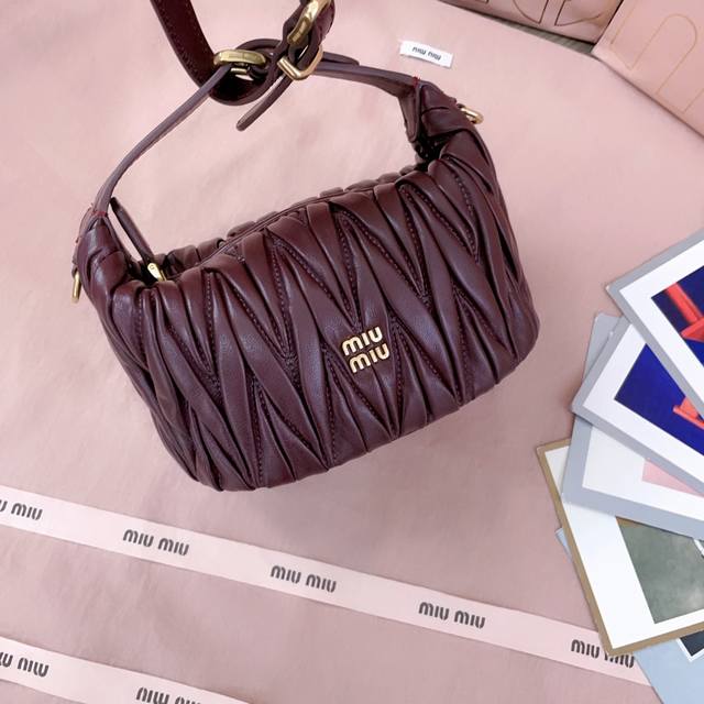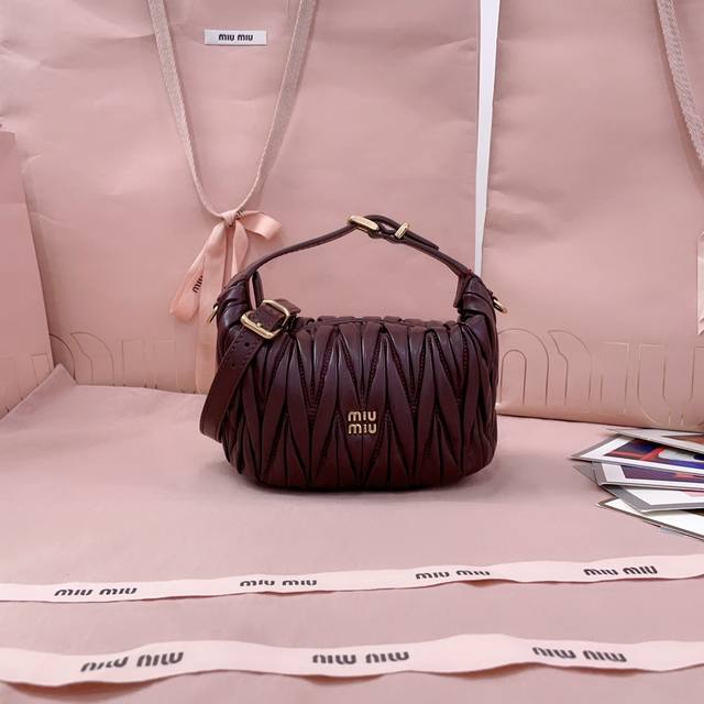 5Ne026, New mini lunchbox bag, classic Matelasse embroidery, a symbol of Miu style, practical and functional design, soft and high-quality leather, novel and unique style, cotton satin lining, detachable extension strap (can be used as an accessory), wrist strap suitable for hand-carrying or shoulder carrying, dimensions: 15 x 8.5 x 8 cm,