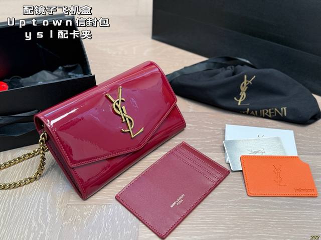6 Colors with Mirror and Airplane Box, YSL Uptown Envelope Bag with Card Holder,