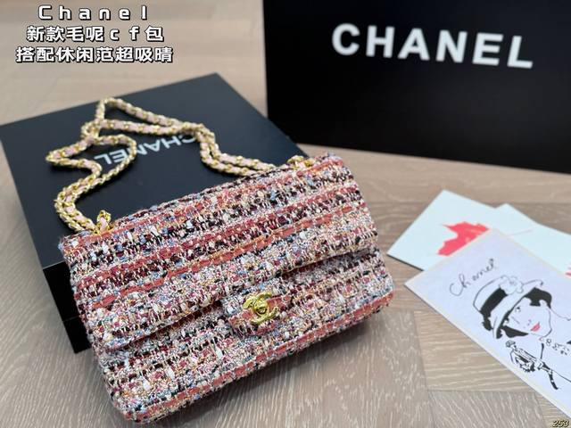 8 colors Chanel tweed bag, super eye-catching for a casual look, classic and versatile, elegant, stylish and casual, absolutely gorgeous, a must-have for every girl. Sizes 25 x 16.