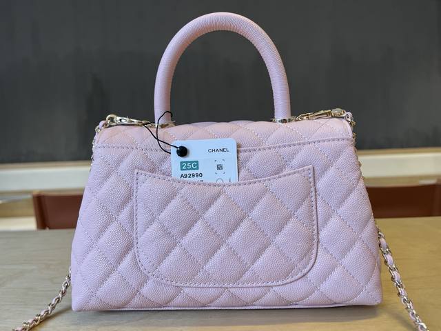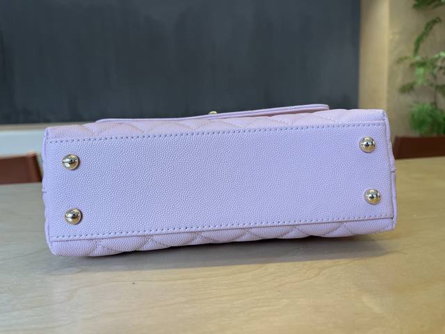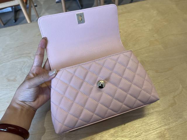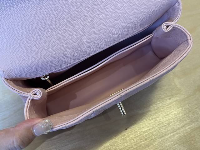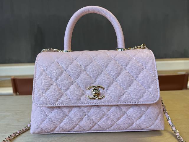 92 Chanel Cocohandle bag with 14K light gold stitched lining, this season's Cocohandle bag features a full leather lining made of imported small-beaded cowhide. A brand new classic version: 23cm