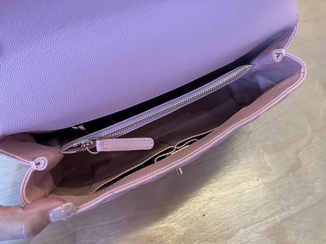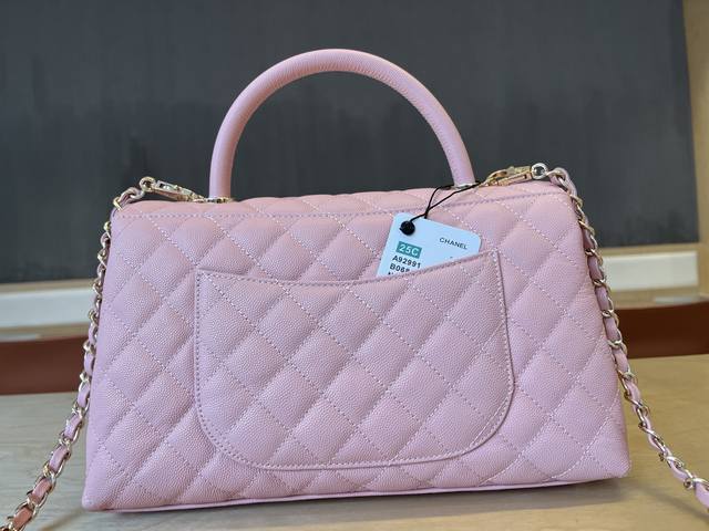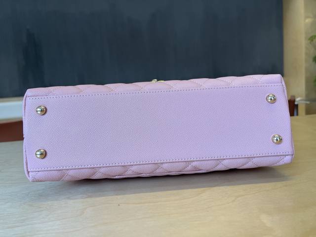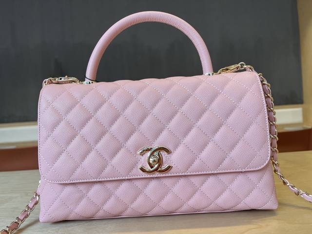 92991 Chanel Cocohandle bag with 14K light gold stitched lining, this season's Cocohandle bag with full leather lining, imported small-beaded cowhide, new classic version: 28cm