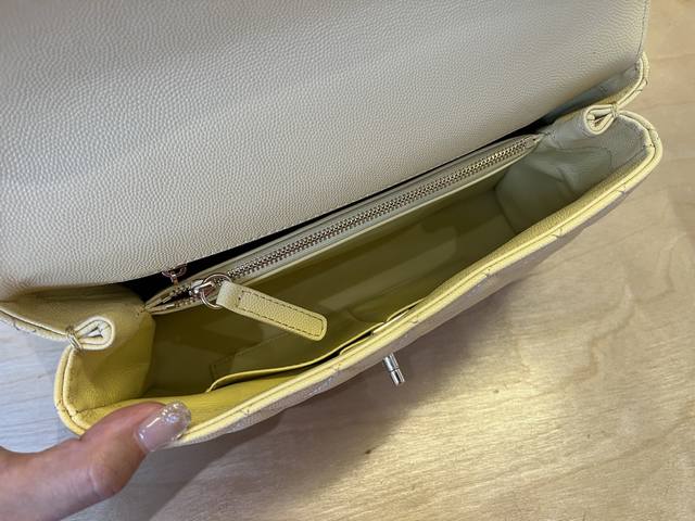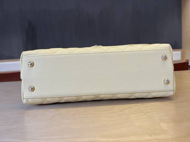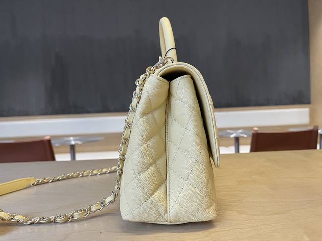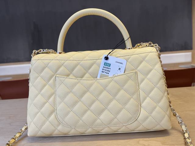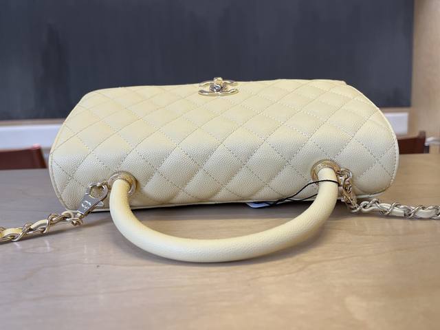 92991 Chanel Cocohandle bag with 14K light gold stitched lining, this season's Cocohandle bag with full leather lining, imported small-beaded cowhide, new classic version: 28cm