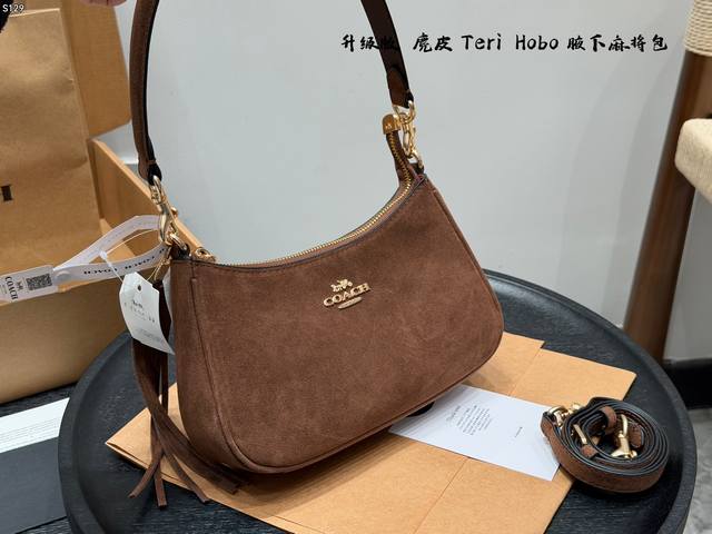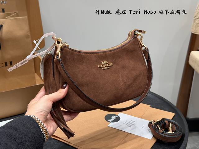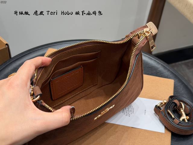 Coach Teri Armrest Bag Hobo Mahjong Bag Suede Brown