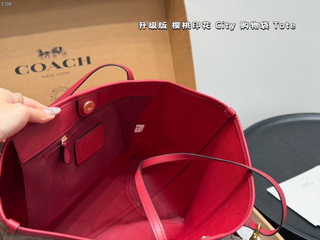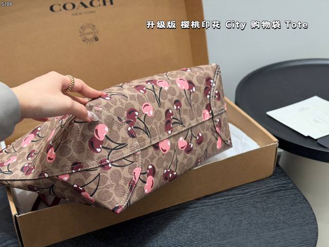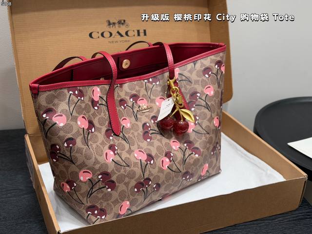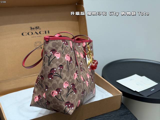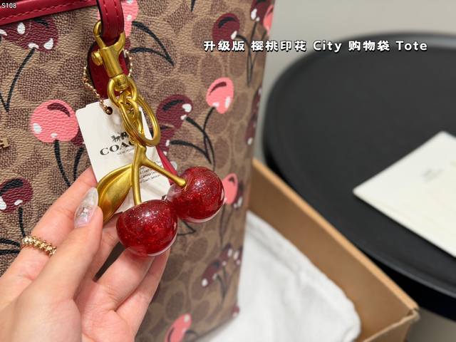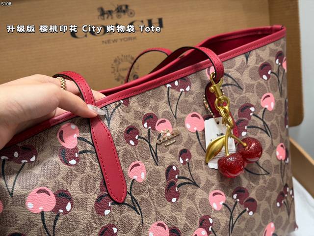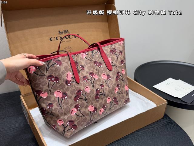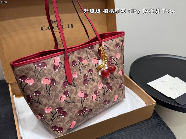 Airplane Box (Upgraded Version)! Comes with a cherry charm. Size: 33*27cm. Coach Cherry Print Magnetic Clasp Single-Sided City Tote Bag. Classic Logo Shopping Bag. A super popular item that sells out in minutes! Matches various outfits. Suitable for all seasons! Search "Coach Shopping Bag".
