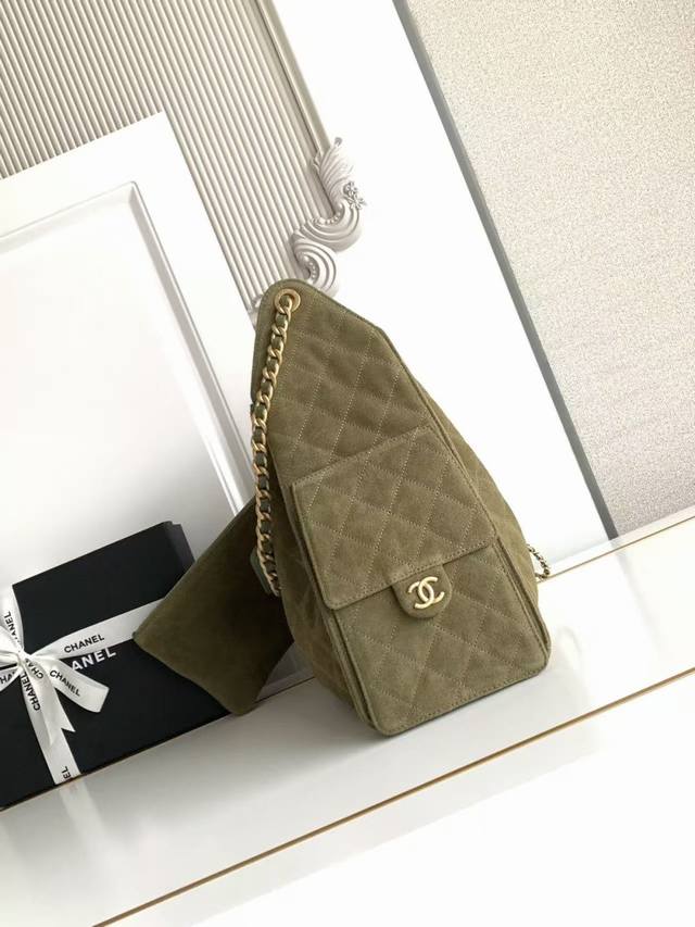 As5311 Chanel 25 is another bag named after a year. The 25C suede hip-hop bag is a large, vintage-style bucket bag with a gold coin button drawstring and quilted design, featuring a classic black and gold chain. It exudes sophistication! A must-have for everyday outings, it boasts a beautiful appearance and delicate texture, easily complementing both casual and formal occasions. Dimensions: 40X30X15Cm.