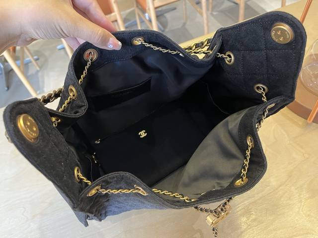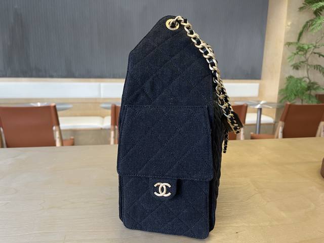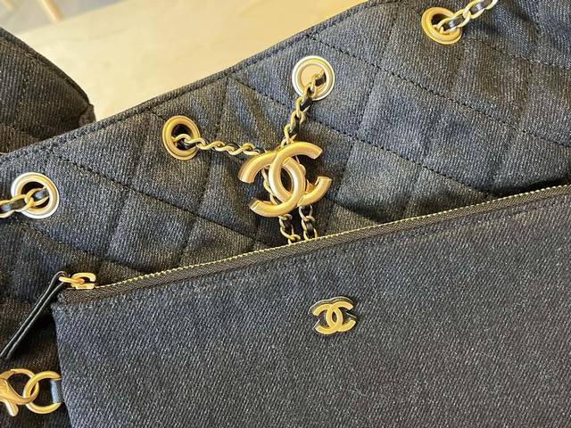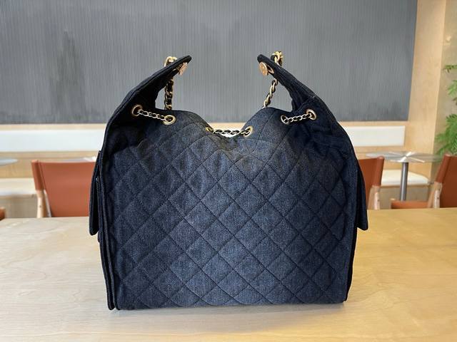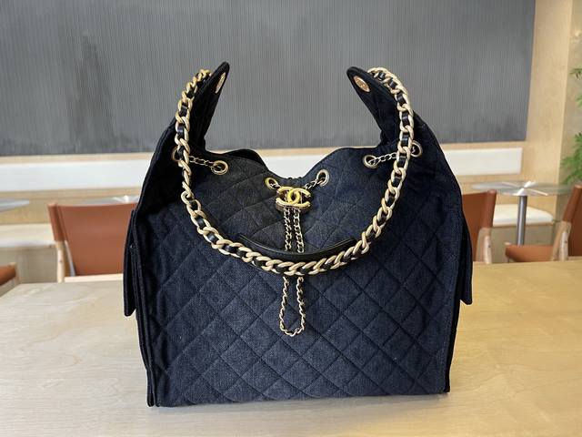 As5311 Early Spring Runway Collection 25P Spring/Summer Denim New Arrival. This bag boasts a relaxed, hippie-chic style, making it the undisputed king of spring/summer vacation bags! A sophisticated and elegant choice for the modern woman, it's not just beautiful but also highly practical, perfectly meeting most people's expectations for a bag. Material: Denim with gold hardware! Size: **Large (