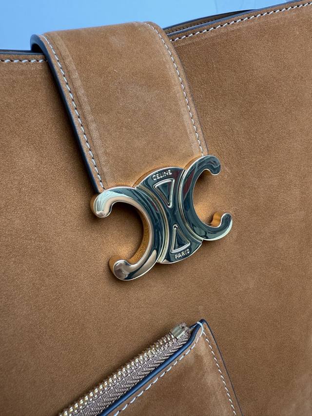 Authentic Celine Louise Large Leather Handbag (24S New Louise Bucket Bag) For those who previously admired the 16 bucket bag, check this one out! This year's Louise features an Arc de Triomphe element on the clasp, enhancing its recognizability and making it more stylish and sophisticated. It can be carried by hand, crossbody, or over the shoulder, and has a very generous capacity. Perfect for daily commutes, business trips, or office work. Grab it now! Made of cowhide leather with a sheepskin lining, gold-tone finish. Hand-carry, shoulder-carry, and crossbody options. Leather flap with Triomphe magnetic closure. One detachable interior zip pocket. Detachable and adjustable shoulder strap. Minimum length 50cm, maximum length 57cm. Dimensions: 28 x 24 x 16 cm. Item Number: 116613Fx9.38No