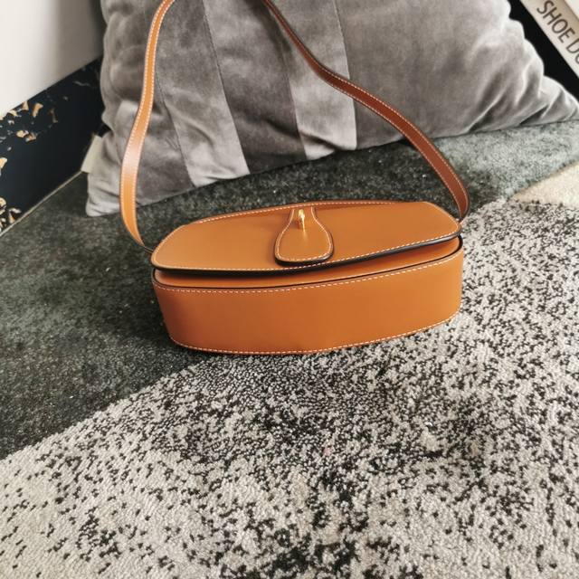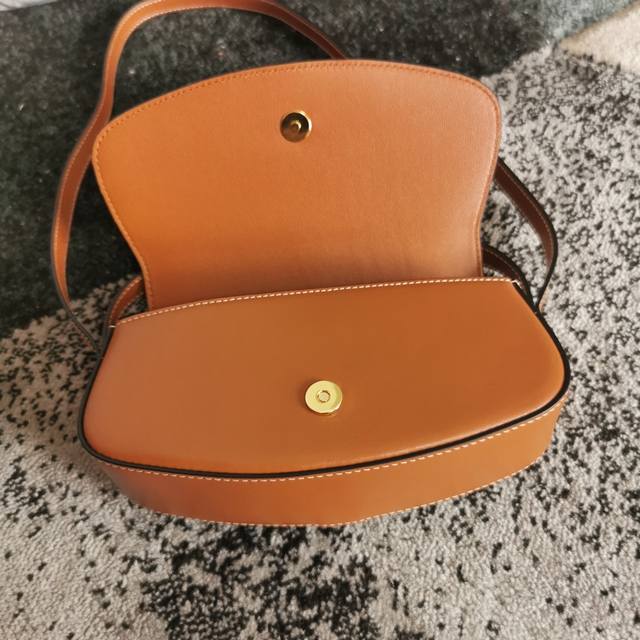 Authentic Cel*Ine Tabou Clutch. A great autumn/winter item, perfect for carrying by hand or over the shoulder. Don't underestimate its capacity! Sufficient for everyday use: phone, powder compact, lipstick, watch, or even three phones! Outer leather cowhide lining, sheepskin lining. Shoulder or hand carry with a flap closure and decorative snap closure. One main compartment and one interior flat pocket. Shoulder strap length 28cm, handle length 7.5cm. Item number: 101592. Tan-brown color with original packaging. Dimensions: 18 x 8 x 5 cm.