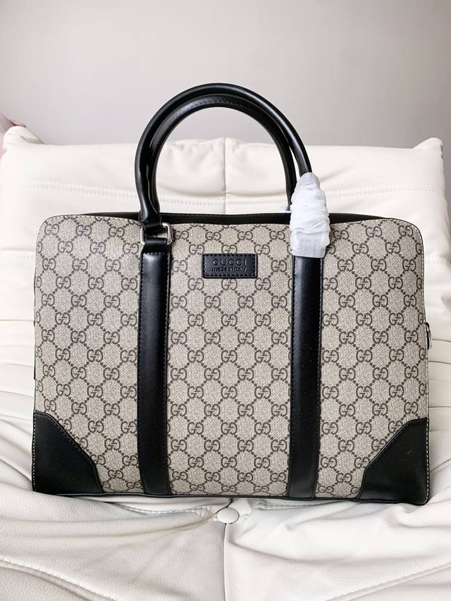 Authentic Gucci men's briefcase, top-quality replica, available from authorized retailers. Model number 474135. Size: 40-30-5.5cm. High-quality replica made with imported PVC material and original top-grain cowhide leather. The replica leather is incredibly soft. Custom-made original hardware with smooth zippers. Perfect craftsmanship, no corner-cutting. Superb quality. Model number 9649 (Mihua