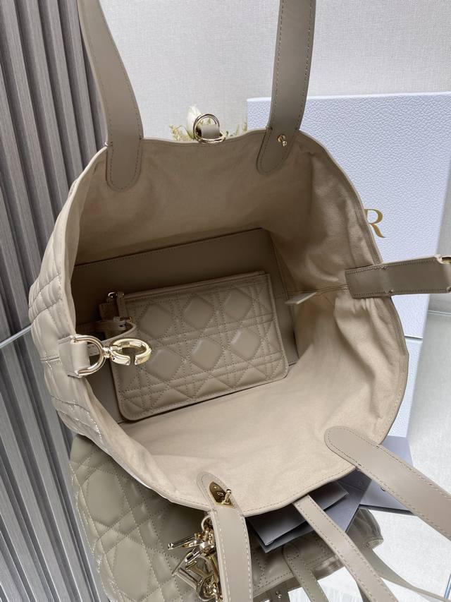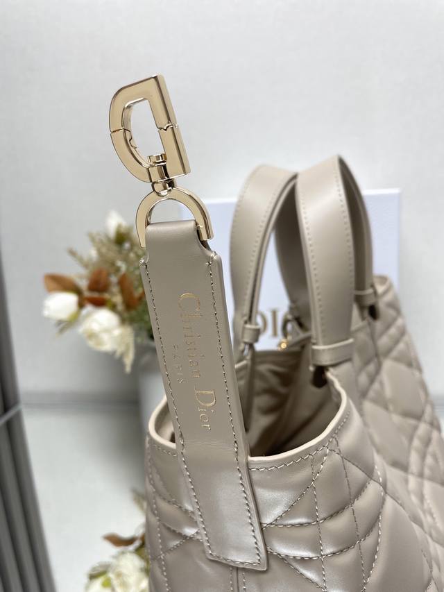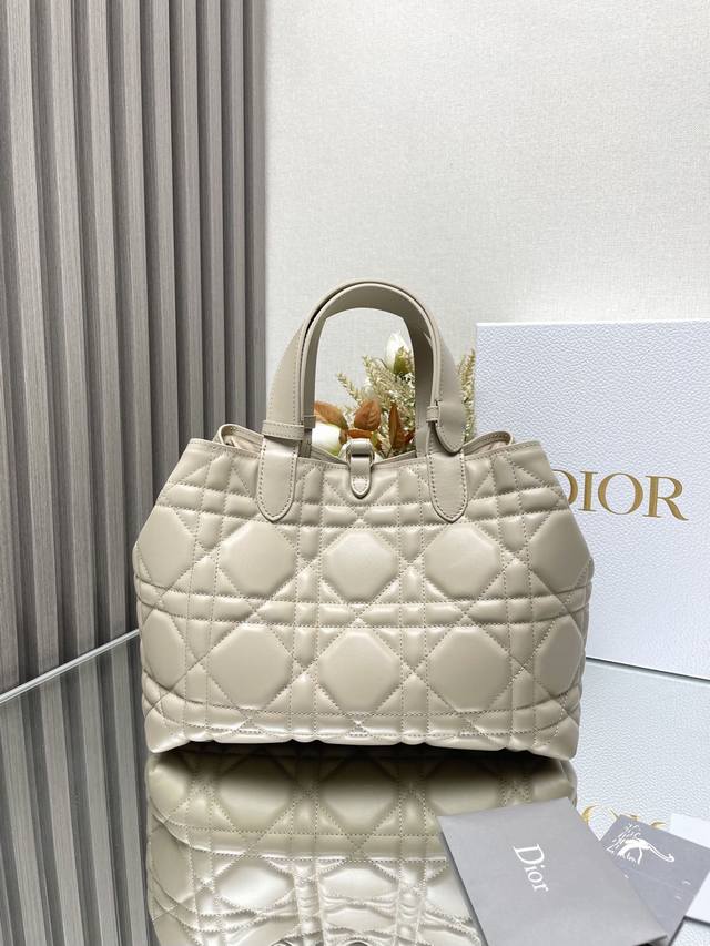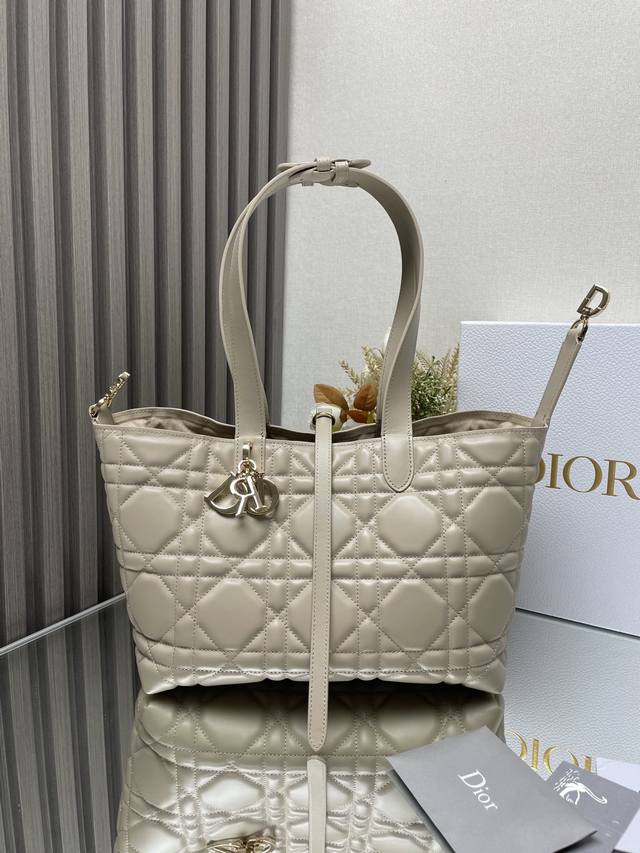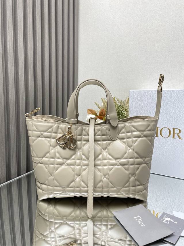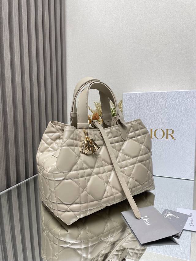 Authentic, High-Quality Dior Toujours Handbag (Light Apricot Medium) This Dior Toujours handbag made a stunning debut in the Spring/Summer 2023 collection, featuring a unique blend of casual and practical design. Crafted from light apricot calfskin leather with oversized cannage stitching, its spacious interior compartments and small pouches offer neat organization for everyday essentials. It features a Cd Lock with a D-shaped knob closure, adjustable sides for added style, and adjustable leather handles for easy carrying. Includes a Cd Lock, drawstring closure, Dior charm, detachable interior pouch, adjustable leather handles, and a dust bag. Model: 2821 Dimensions: 28.5 x 19 x 21.5 cm